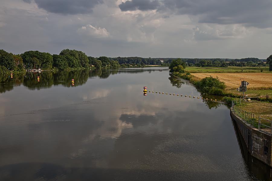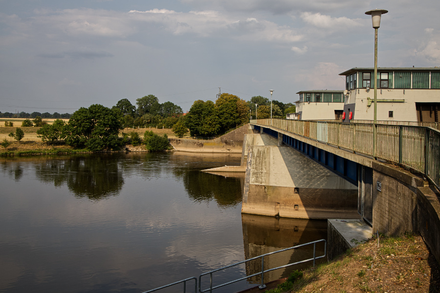 Schlüsselburg liegt nur 30 Kilometer von uns entfernt. Dort macht die Weser einen großen Bogen. Es gibt ein Stauwehr, um die Weser schiffbar zu halten, wird sie hier gestaut. Außerdem wir auch Strom erzeugt.