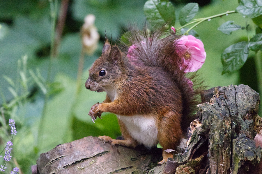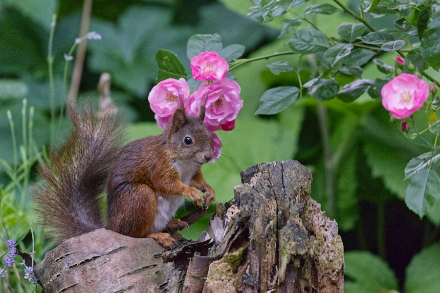 Ein ganz hübsches Arrangement!! Rose als Einkätzchenohrschmuck- sehr schönes Bild!!