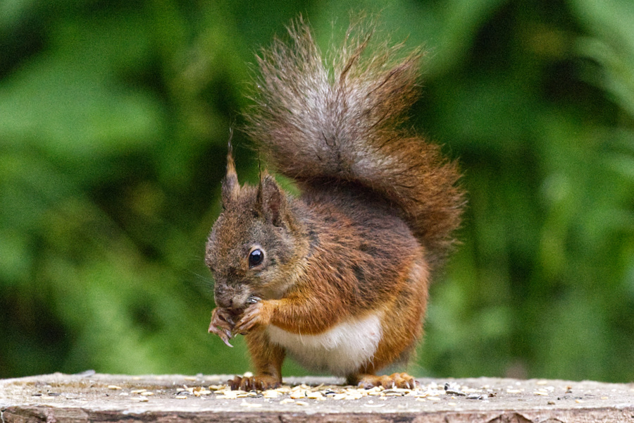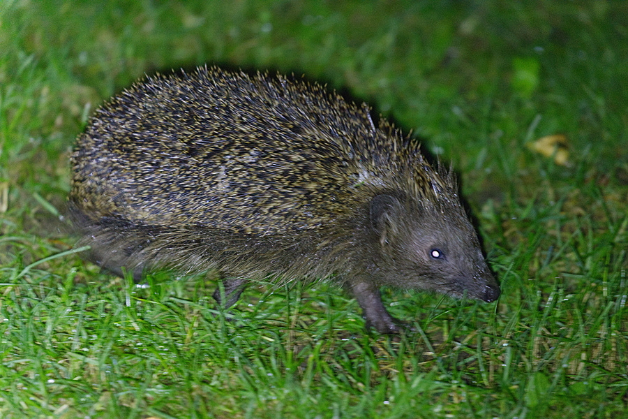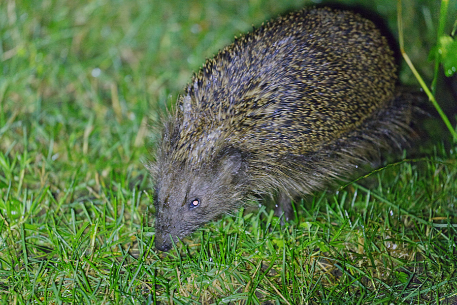 Ich glaube, der hat zur Zeit ein anderes Revier. Ich dachte ja zunächst, dass er sich bei uns irgendwo eingenistet hat, aber dem ist nicht so. Darüber bin ich eigentlich froh. Es ist übrigens ein Igelpärchen, welches hier bei uns wohnt, aber beim Fotografieren mit der Taschenlampe war eines schnell weggelaufen.. Bei meiner Vogelfutterstelle tummeln sich pbrigens Nacktschnecken und fressen Körner!