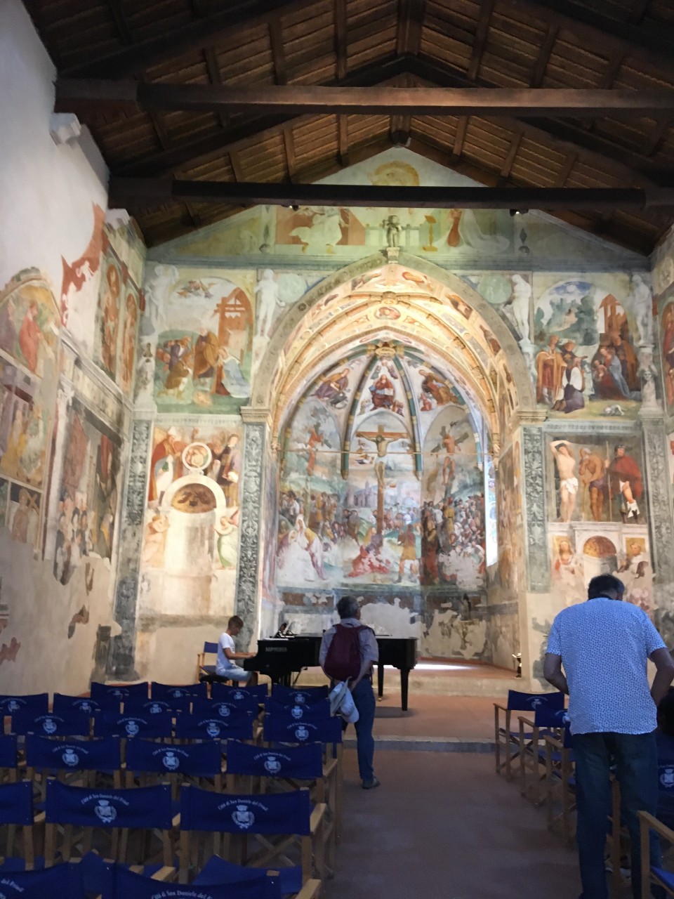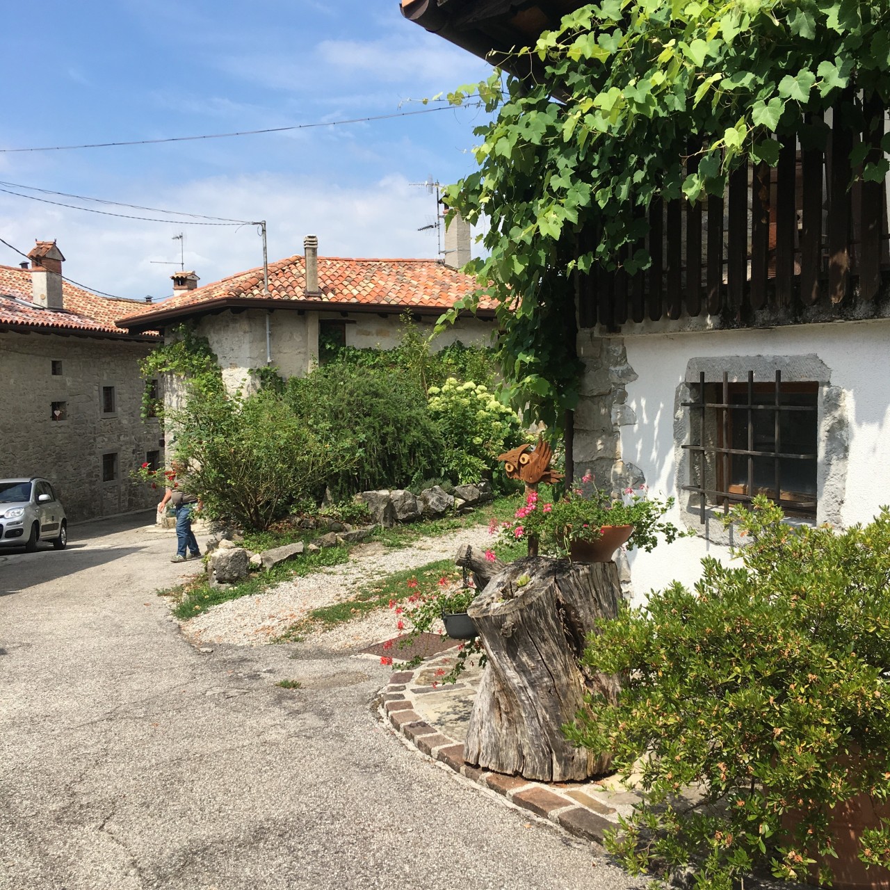 Mit dem Enkel sind wir wieder unterwegs. Nach der ersten Aufregung nach der Landung vorgestern Abend in Treviso, wo wir den Mietwagen nicht bekommen haben, weil Jörg auf der Kreditkarte nicht mit OE geschrieben war , Haben wir einen Wagen von Goldcar bekommen. Eineinhalb Stunden Zeit haben wir dabei verloren waren aber dann mit unserem Hotel sehr zufrieden und haben gestern schon eine große Tour gestartet. Der erste Ort war Spilimbergo, Dann kam die Schinken Stadt San Daniele dran, in wenn Zone haben wir uns Mumien aus dem 14. Jahrhundert angesehen. Ein Pilzbefall hat dazu geführt. Wenn wir jetzt unser hoffentlich gutes Frühstück hinter uns haben schauen wir uns Gemona an