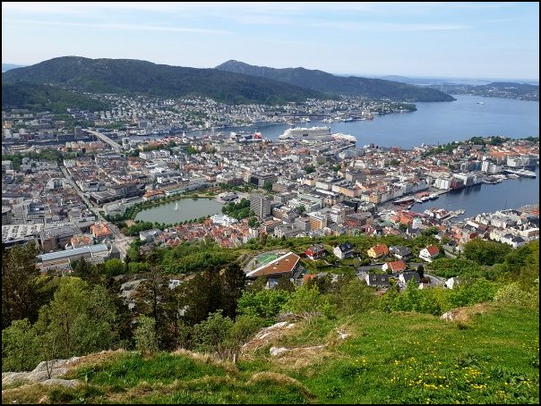 Unterwegs in den Fjorden und Blick vom Hausberg Floyen auf Bergen![]()