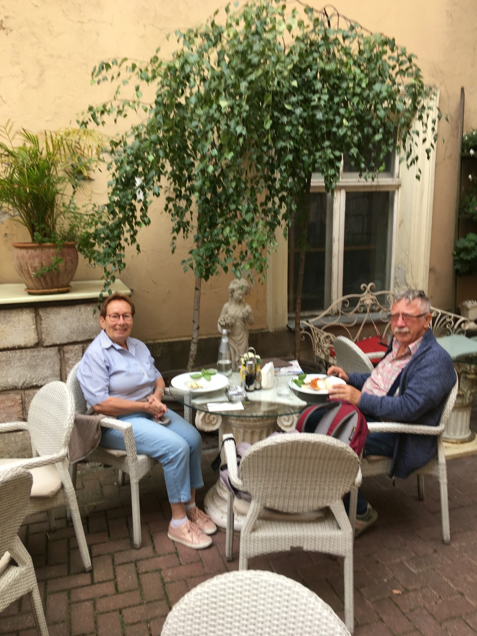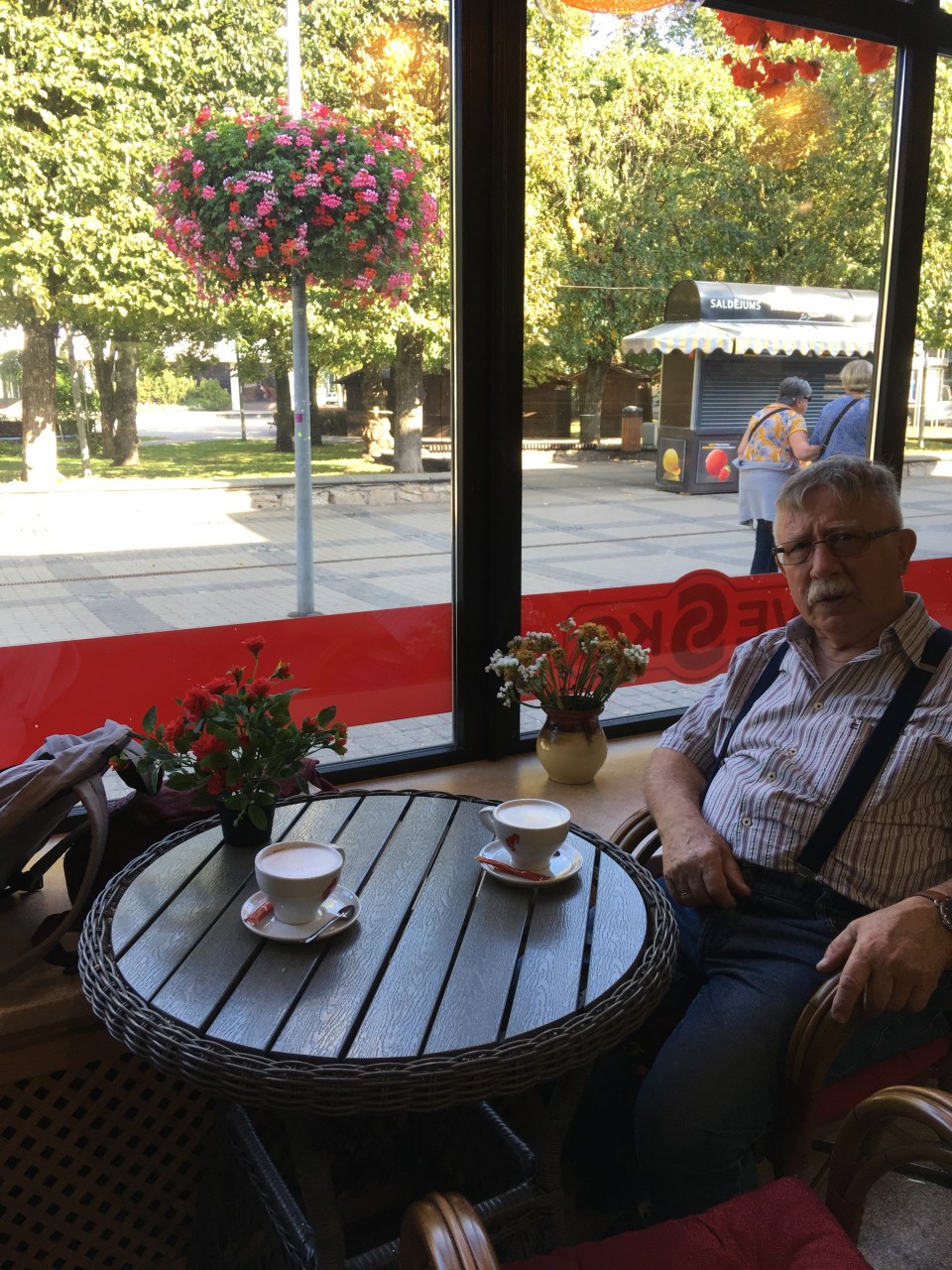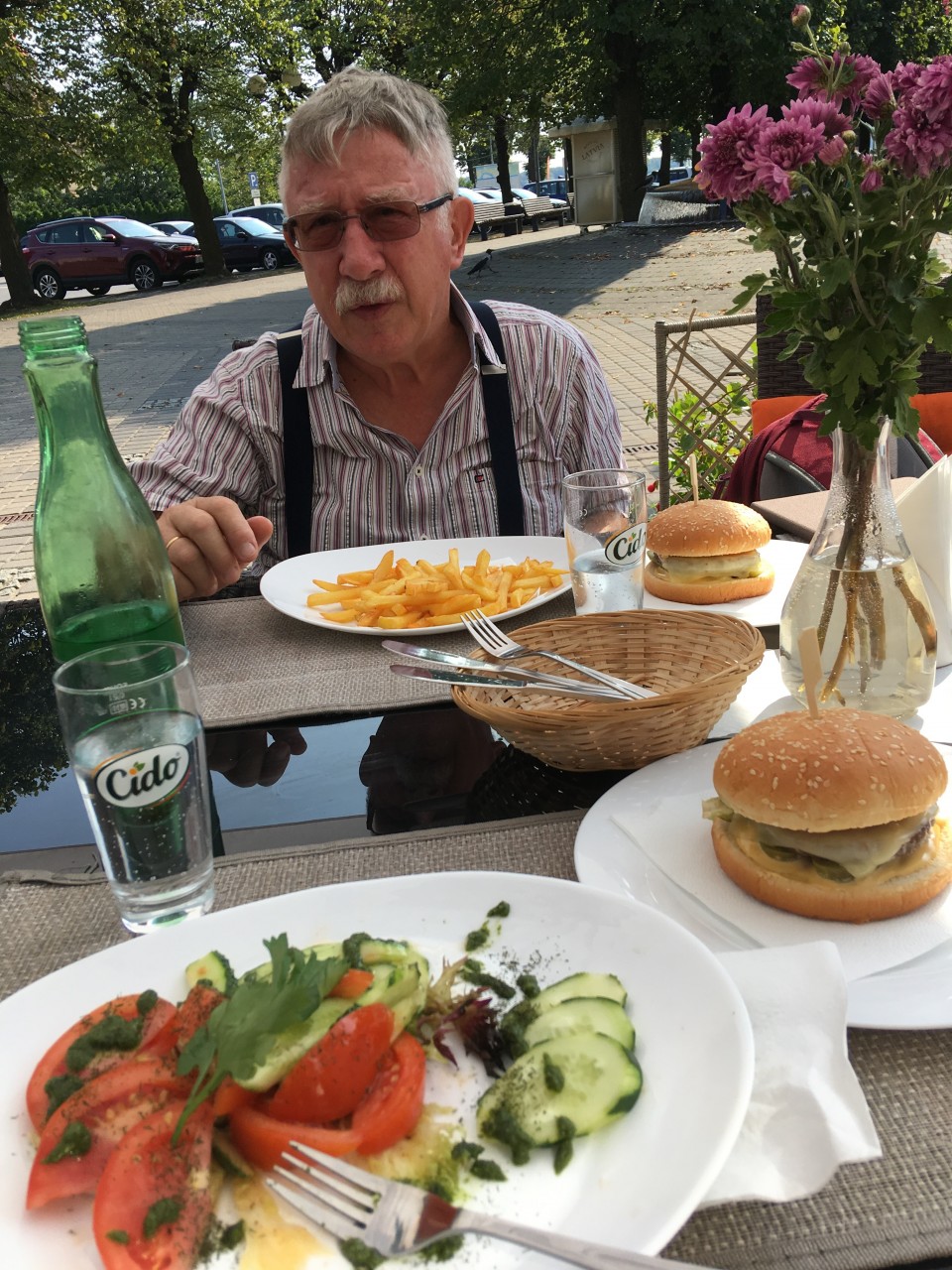Neh, Jürmala war nicht teuer, Cappuccino unter zwei Euro. Das Mittagessen war zwar klein aber wir haben insgesamt nur 13 € bezahlt, wobei das Wasser mit vier Euro am teuersten war. Nach dem Mittagessen waren wir noch mal am Strand, es war herrlich warm, viele Leute im Wasser, auch der Strand war belebt, und wir haben uns einfach nur ausgeruht. Im Hotel haben wir erst mal ein Schläfchen gemacht. Unglaublich, aber das Alter schlägt zu. Nur mit Jörgs Hilfe kam ich überhaupt aus dem Zug mit den tiefen Trittbrettern .