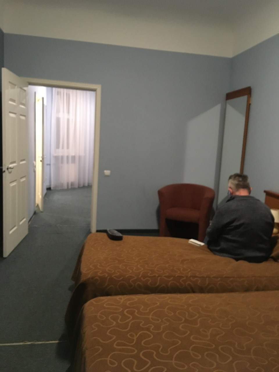 Unser Hotel heißt City Hotel Teater und hat vier Sterne. Dafür ist es aber sehr abgewohnt. Es besteht aus mehreren Gebäuden und wir sind im sechsten Stock in einer Ecke untergebracht. Es ist alles sauber und auch großzügig, auch das Bad . Heute haben sie es wahrscheinlich beim Saubermachen vergessen.