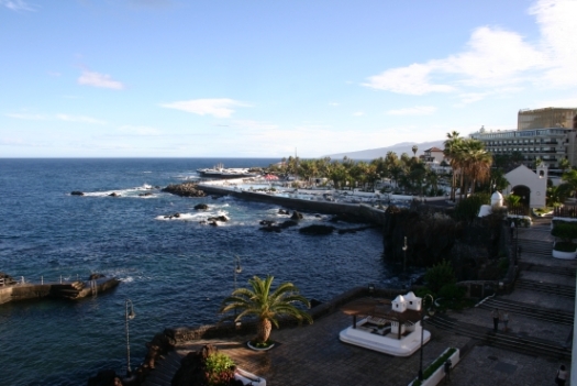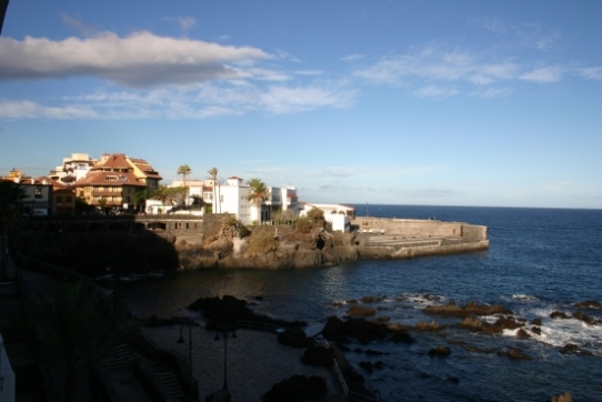 Teneriffa Halbpension - klingt nicht wirklich aufregend, sollte man meinen. Gut, viele unerwartete Überraschungen gab es auf dieser Reise tatsächlich nicht. Überraschend ist aber die Schönheit der Nordseite der Insel und die Gegend um den Vulkan. 90% der Touristen besuchen den Süden Teneriffas - mir unverständlich, denn dort ist es eher karg, trocken. Na ja, trocken bedeutet auch warm. Viele Strände sind schwarz und wer einen Urlaub schlichtweg am Strand haben will, der ist im Norden nicht gut aufgehoben. Aus den 90% schließe ich, dass die meisten den Strandurlaub wollen. Das wollten wir nicht. Also wählte ich Puerto de la Cruz, im Norden gelegen. Mitgewählt haben wir dann ca. 3-4 Grad kühleres Wetter und einen kräftigen Wind mit herrlichen Wellen. Baden war da nicht immer angesagt, aber dazu später. Gebucht haben wir bei Tjerreborg, es gibt das Hotel auch bei Alltours. Untergekommen sind wir im San Telmo, direkt am Meer im Zentrum von Puerto gelegen. Das weißte Gebäude in der Mitte ist das San Telmo.Unser erstes Zimmer lag nach innen an einem Lichtschacht - für 8 Euro pro Tag mehr konnten wir in ein Balkonzimmer wechseln und haben dies nicht bereut. Hier also unser Hotel und unser Balkonblick. Morgen geht es weiter. Gruß Heike