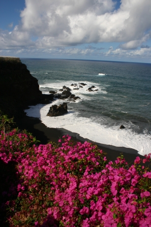 Und nach den Bananenplantagen kommt man an einen echten schwarzen Strand. Und da musste ich natürlich ein bisschen experimentieren: schwarz und weiß: