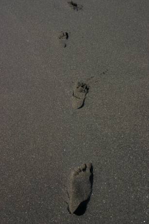Mit bunten Elementen sieht der schwarze Strand natürlich auch toll aus - Übrigens: baden ist da nicht drin. Die Wellen hatten so 3-4 Meter - Badeverbot.Siehe Foto 3. Und die dürfen nicht fehlen: Fußspuren im Sand....
