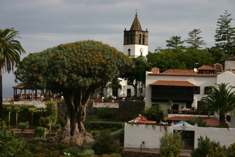 Ebenfalls im Norden von Teneriffa, ca. 15 km westlich von Puerto de la Cruz, liegt Icod de los Vinos, ein kleines Städtchen am Abhang gelgen. gelegen. Neben dem Weinanbau, dem der Ort seinen Beinamen verdankt, ist ein mehrere Jahrhunderte alter Drachenbaum die Hauptattraktion des Ortes. Angeblich soll er 1000 Jahre alt sein.Deshalb heisst er Drago Milenario. Er ist fast 20 Meter hoch und hat einen Stammumfang von 6 Metern. Der Drachenbaum gehört zur Familie der Agavengewächse. Als junger Baum hat er einen dicken Stamm und oben schwerterähnliche "Blätter". Dem Namen hat er aufgrund des Umstandes, dass beschädigte bzw. abgebrochene Triebe oft wieder austreiben und dann 2 neue Triebe bilden, ähnlich einem Drachen, dem ebenfalls mehrere Köpfe nachwachsen, wenn man einen abschlägt. Außerdem ist der Saft des Baumes rot wie Drachenblut. Ältere Bäume sehen daher ziemlich urig aus.