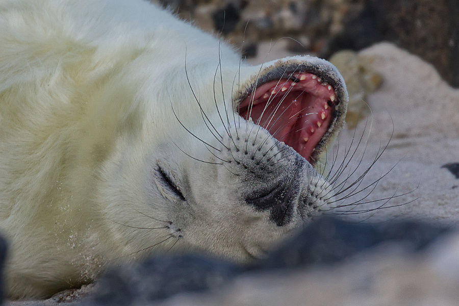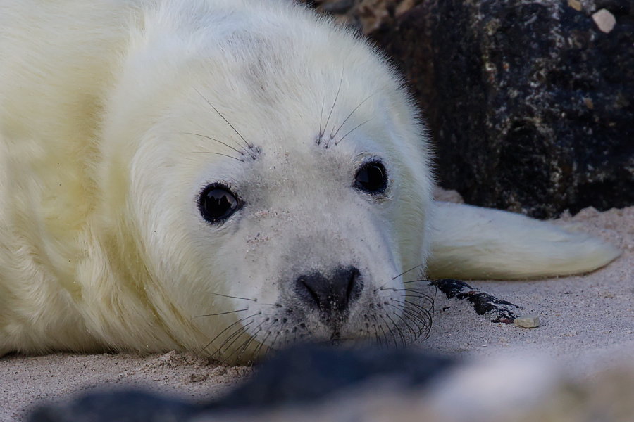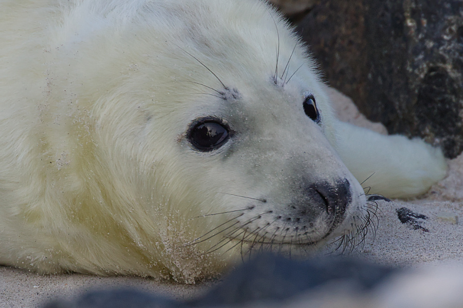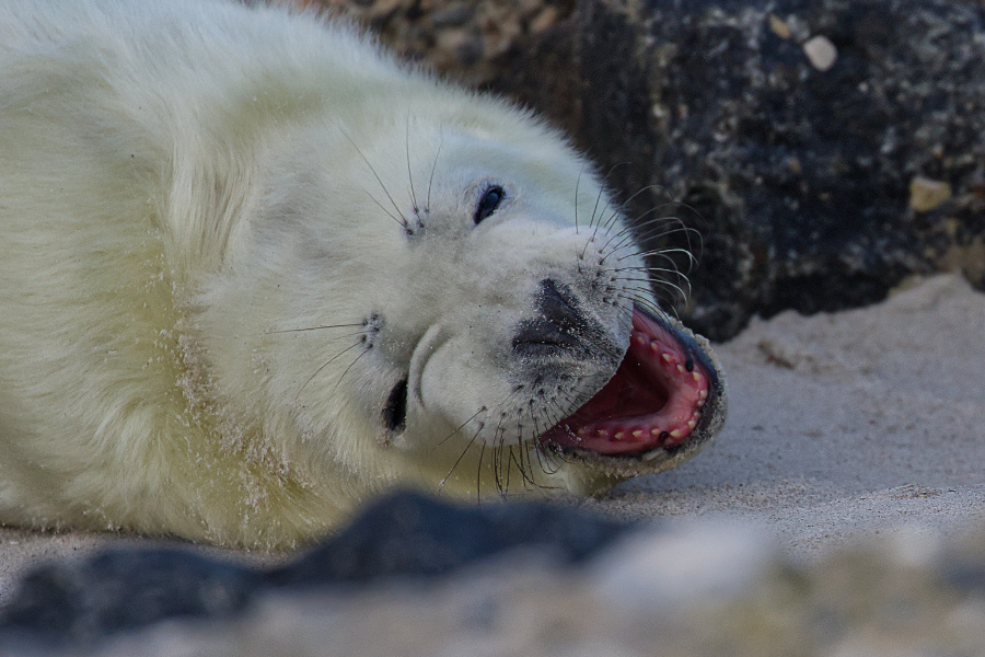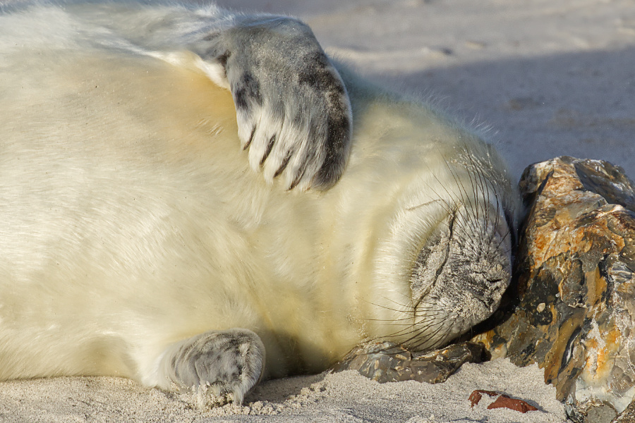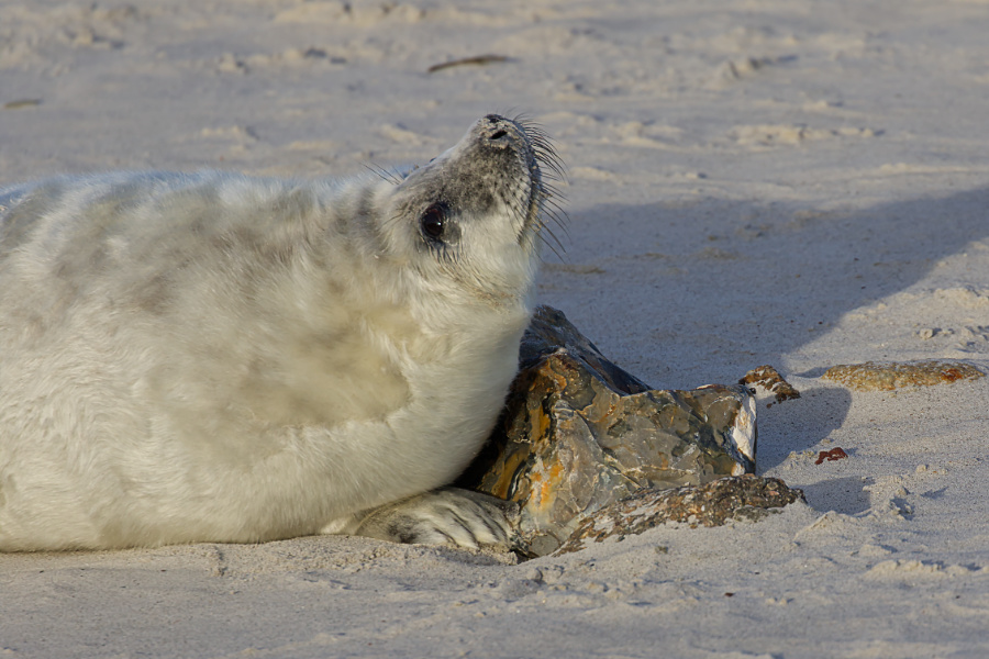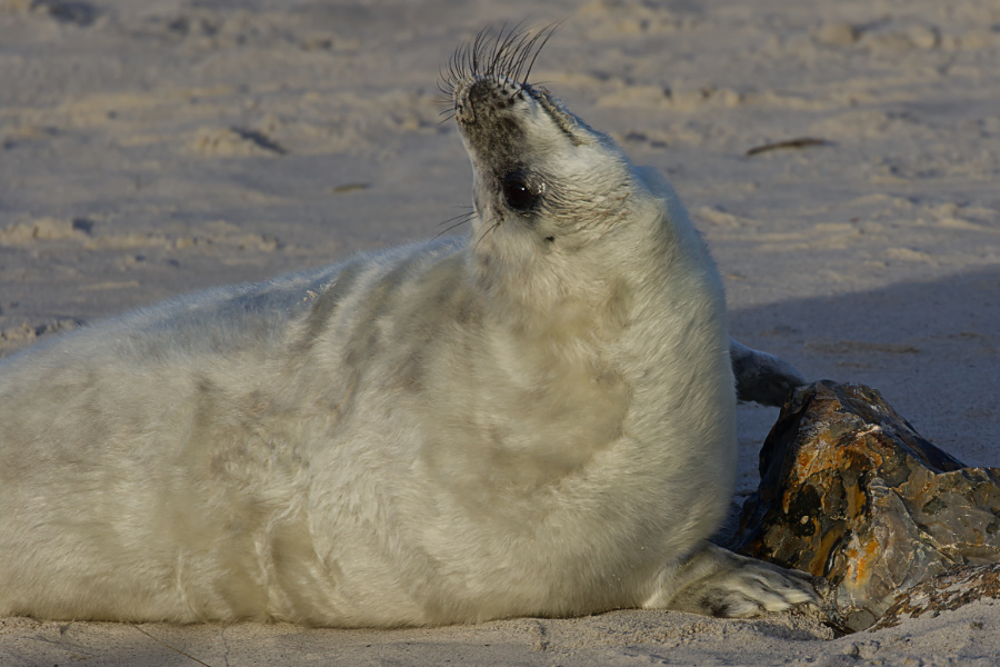 Allerdings pfiff der Wind und schüttelte uns ordentlich durch, mitsamt den Sandkörnern. Wir blieben eine Weile am Eingang zum Südstrand. Die Kegelrobben waren heute einfach faul und selbst die Bullen schoben eine ruhige Kugel.