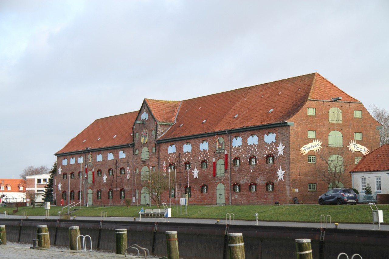 Bemerkenswert in Tönning ist dieses Gebäude - es dient in der Adventszeit als Adventskalender und jeden Tag soll dann ein Türchen - die Fensterklappen - geöffnet werden