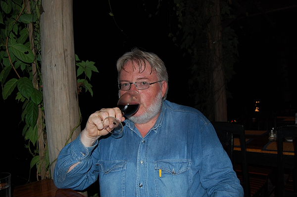 Wir haben uns nach einem Sonnenuntergang in Luang Prabang den Luxus eines 8 Jahre alten guten franz. Weines geleistet. (Wir sind eben Weintrinker…) [/quote]