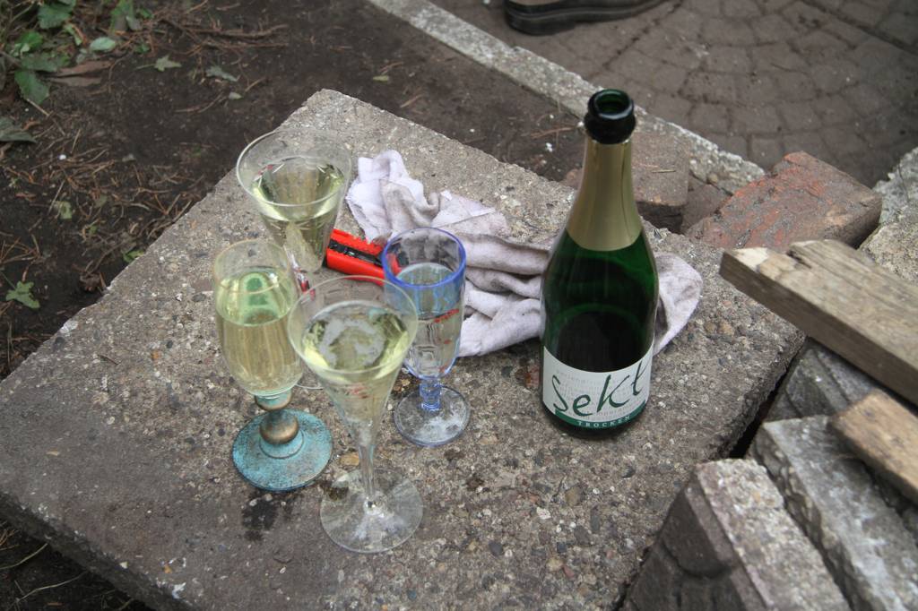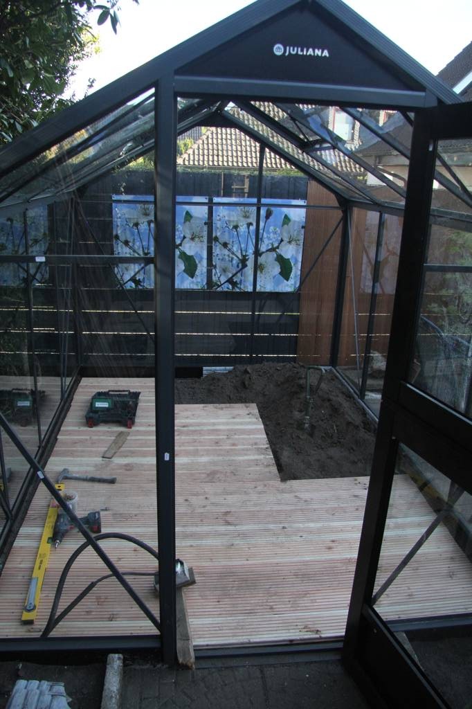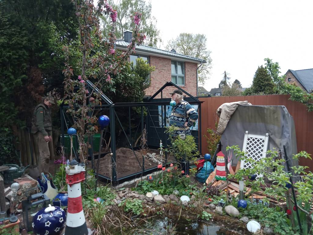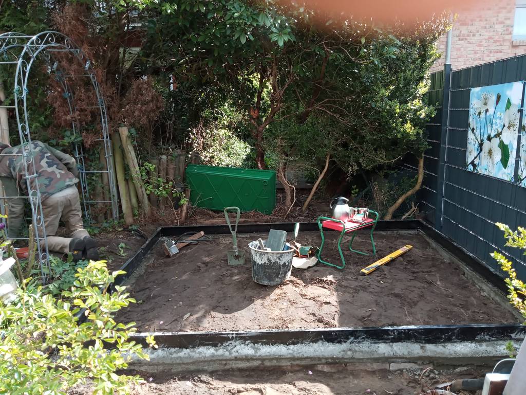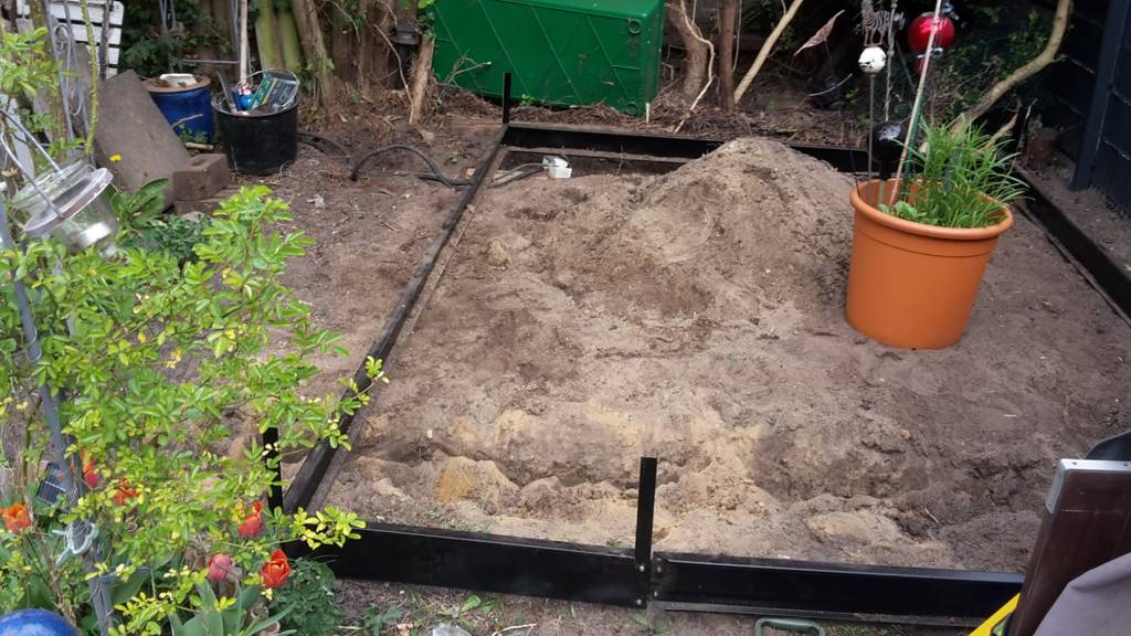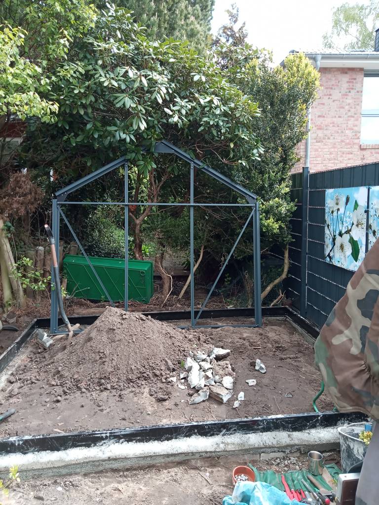 Während ich heute im Büro gearbeitet habe, wurde am Gewächshaus weitergearbeitet. Das Fundament wurde mal probegelegt und da kam ein nicht unerhebliches Problem zu Tage