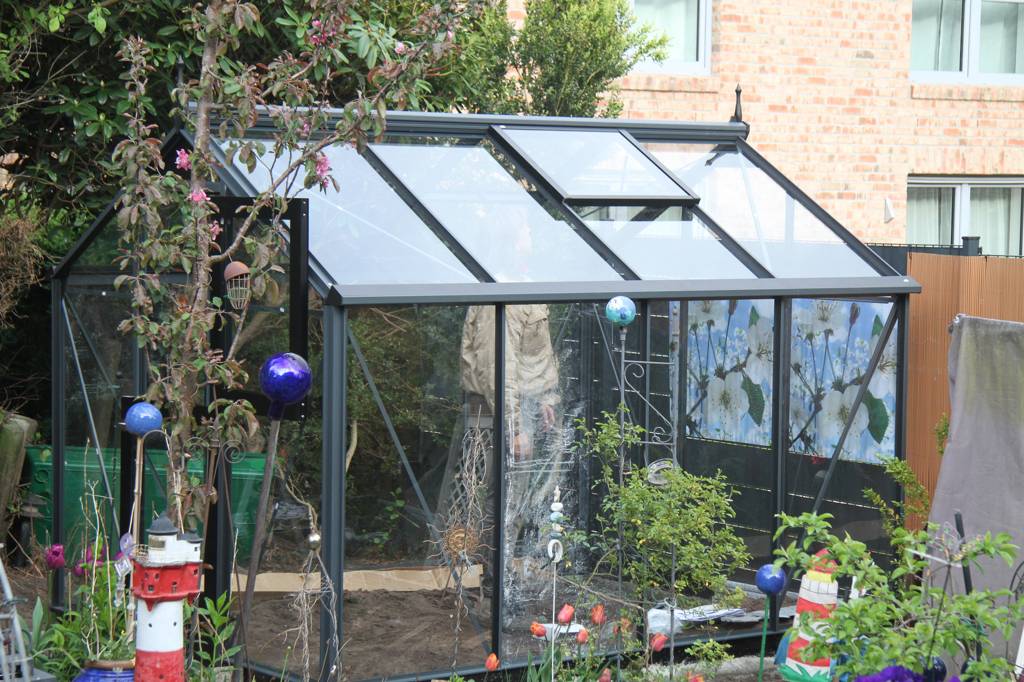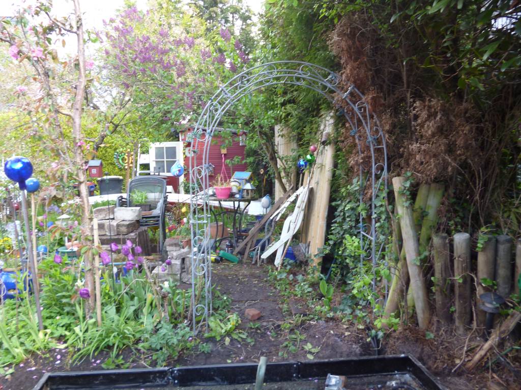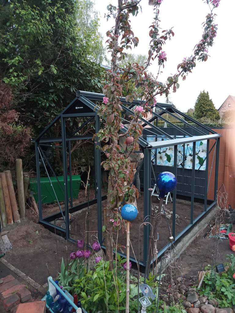 DIe Tür des Gewächshauses und der Rosenbogen - die Tür wird nicht aufgehen... unser anderes hatte eine Schiebetür, da war das kein Problem