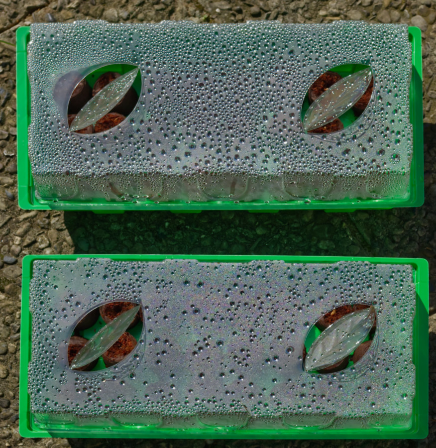 Unsere Gartencenter haben seit kurzem wieder geöffnet und ich habe dort dieses Zimmer-Gewächshaus mit 24 Quelltabs gleich in zweifacher Ausfertigung gekauft.