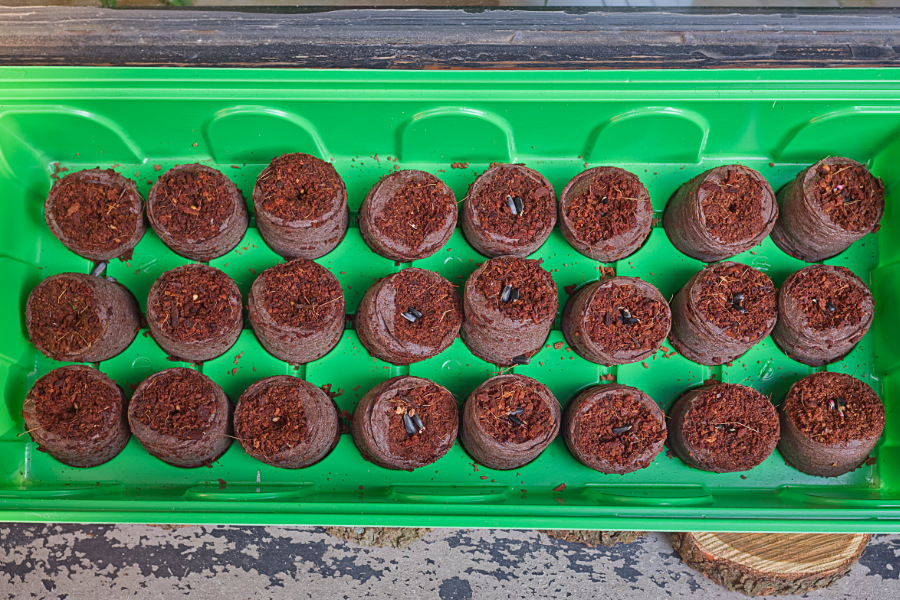 Ich habe die Quelltabs mit Lavendel, Sonnenblumen und Buschtomaten bestückt. Mal sehen, was daraus wird. Im Moment stelle ich sie tagsüber raus und am Abend wieder ins Warme.