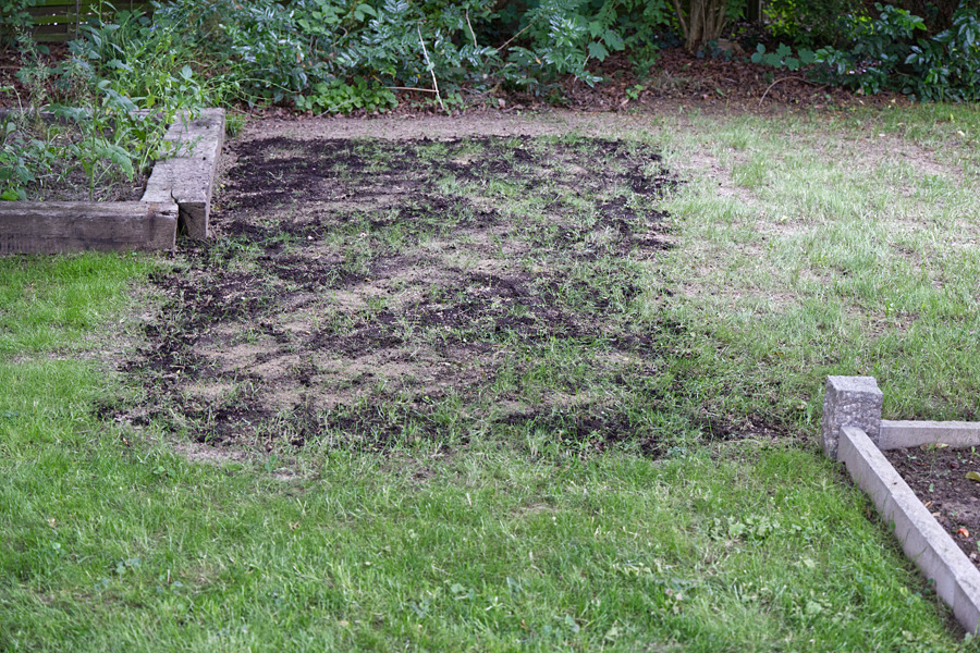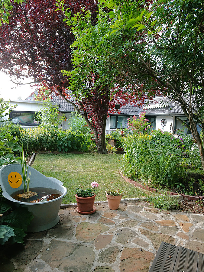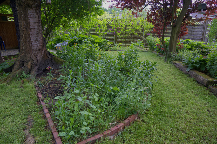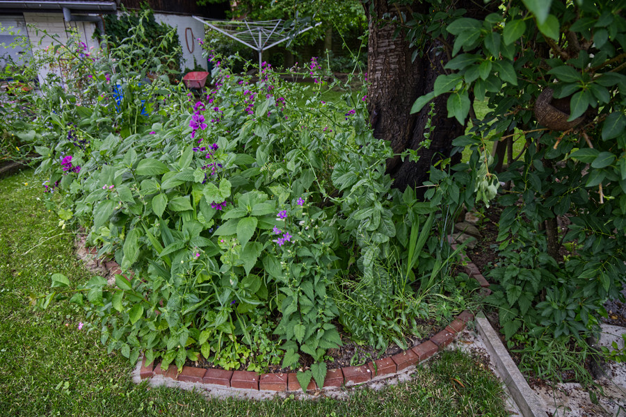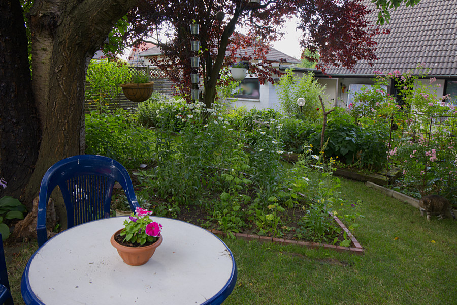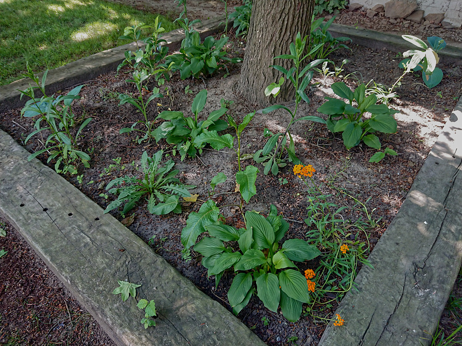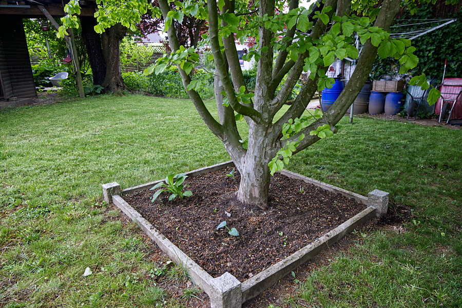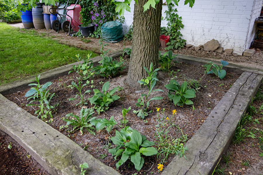 Die Schattenblumen kommen nur langsam und dann habe ich wieder ein Stück Rasen eingesät.