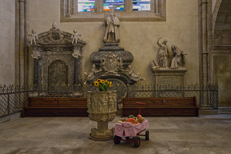 Gerade im Bau befindet sich eine Bibliothek, die Außenanlagen werden gerade neu gestaltet, Wir werfen noch einen Blick in die Klosterkirche. Dann gehen wir durch das Tor hinaus zu unserem Auto, das wir auf dem Parkplatz vor dem Kloster abgestellt haben.