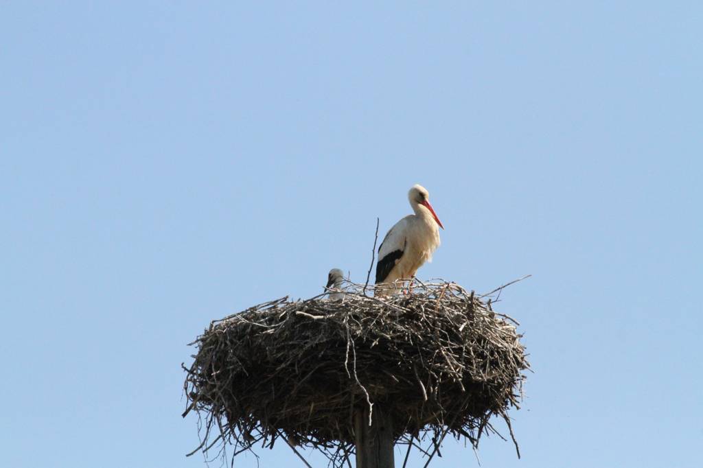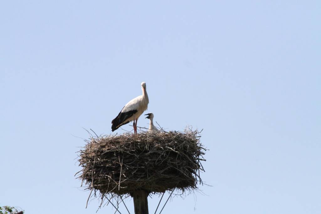 Und dann hatten wir endlich das erste Storchennest entdeckt. Vorbeigefahren, gesehen, umgedreht - kein Parkplatz, also irgendwie an den Straßenrand