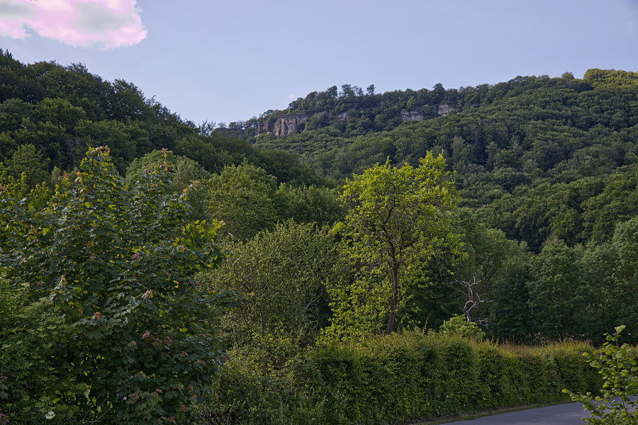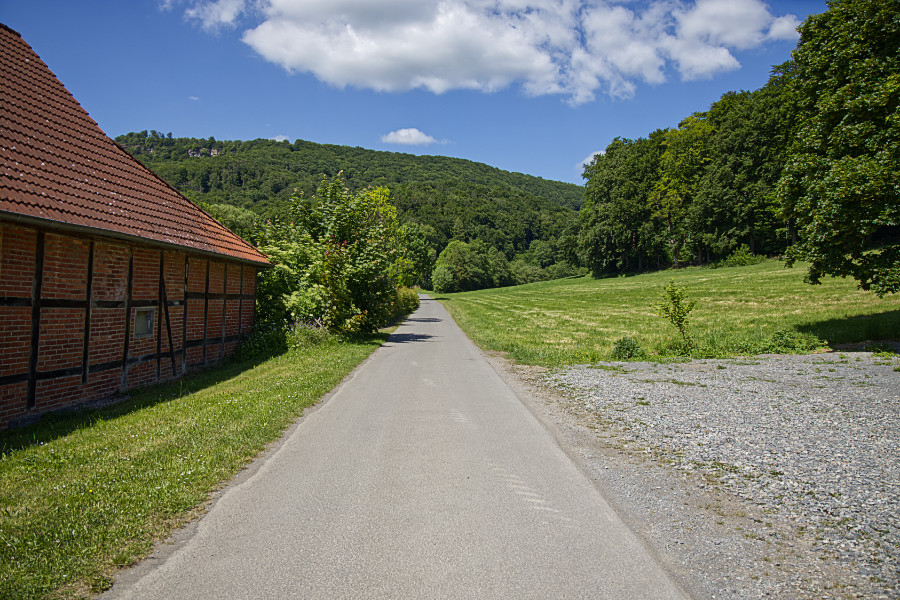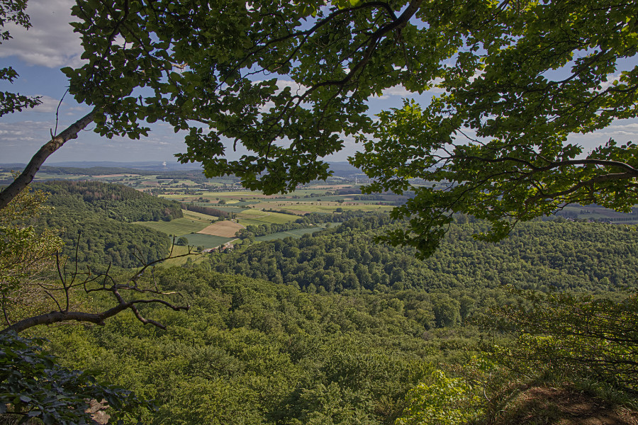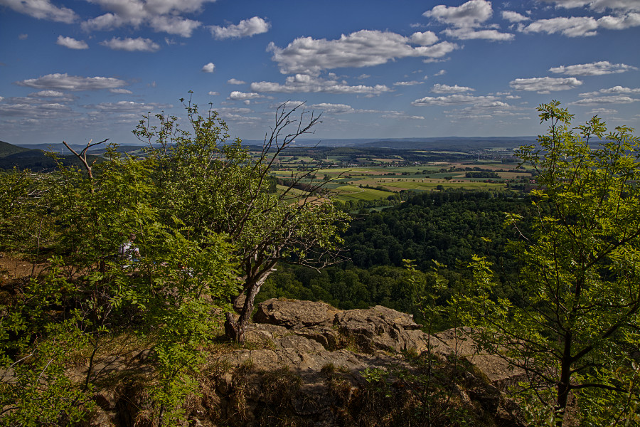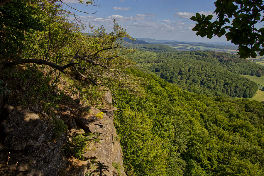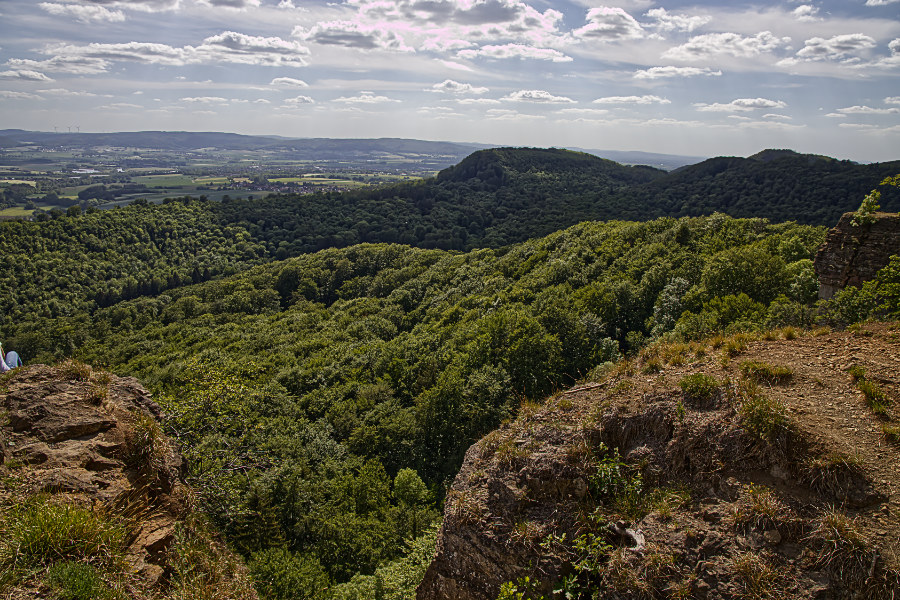 Rund um Hessisch Oldendorf gibt es viele Wandermöglichkeiten. Meine Freundin und ich, wir fuhren zur Pappmühle, stellten den Wagen ab und liefen los. Das Wetter ist herrlich, es ist sonnig, aber nicht zu warm. Anne wollte gerne hoch zum Hohenstein, ein Berg, der zum Süntel gehört. Dort gibt es ein Felsplateau, vom Parkplatz aus kann man die Klippen gut erkennen. Auf der Südseite fallen sie 40 m steil hinab.