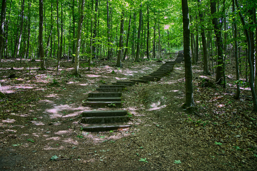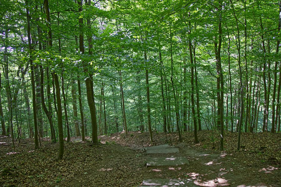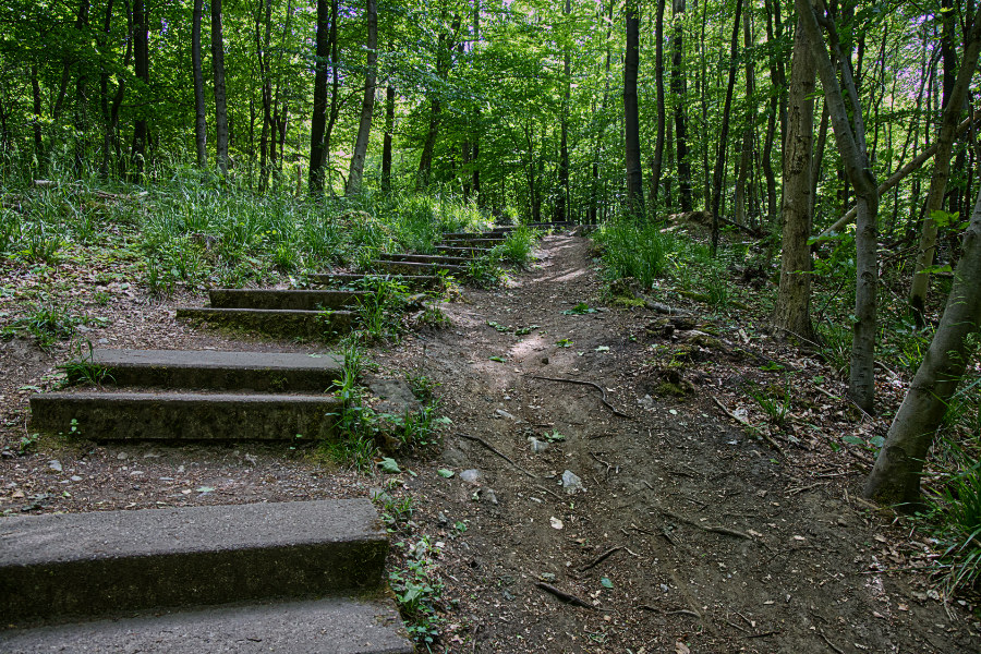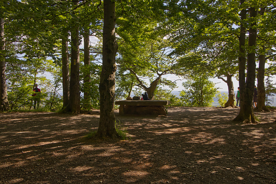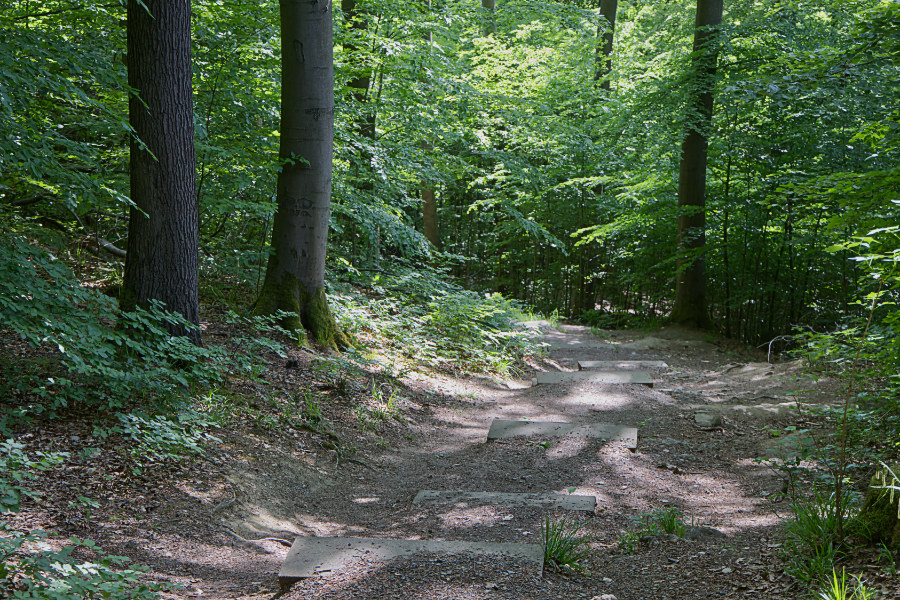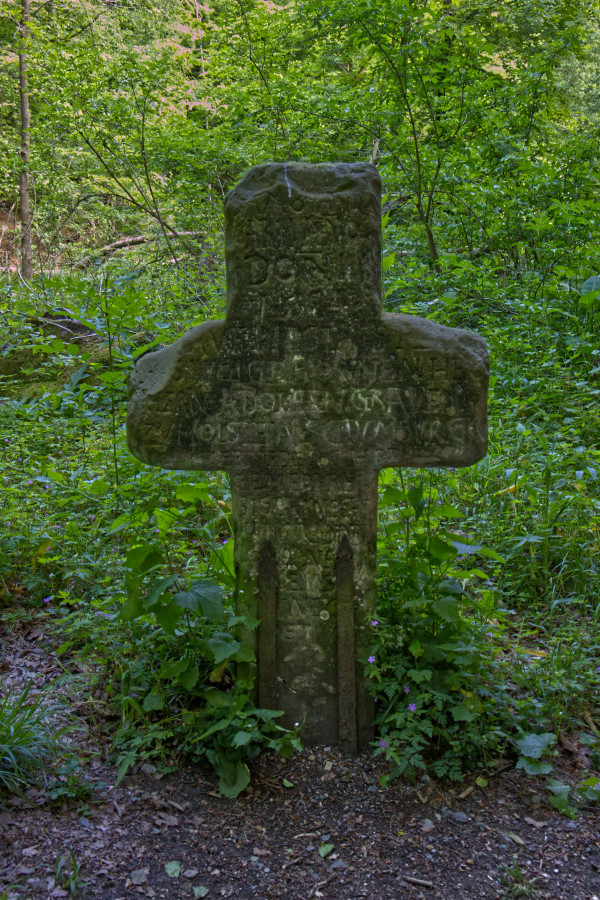 Es ist ein schöner Weg, aber es geht stetig nach oben, mal über Treppen und mal auf Wegen. Unterwegs kommen wir an dem Kreuzstein vorbei. Auf einer Tafel lesen wir die Geschichte zu diesem Riddestein. Es geht um ein tragisches Unglück im Jahr 1584. Später wurde diese Stelle viele Jahre lang von Verliebten genutzt, die sich dort ewige Treue schwörten.
