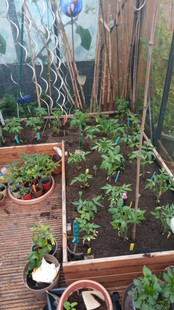 Meines ist diesmal mit Paprika, Chilis und Auberginen geplant, deshalb müssen die Tomaten raus.
