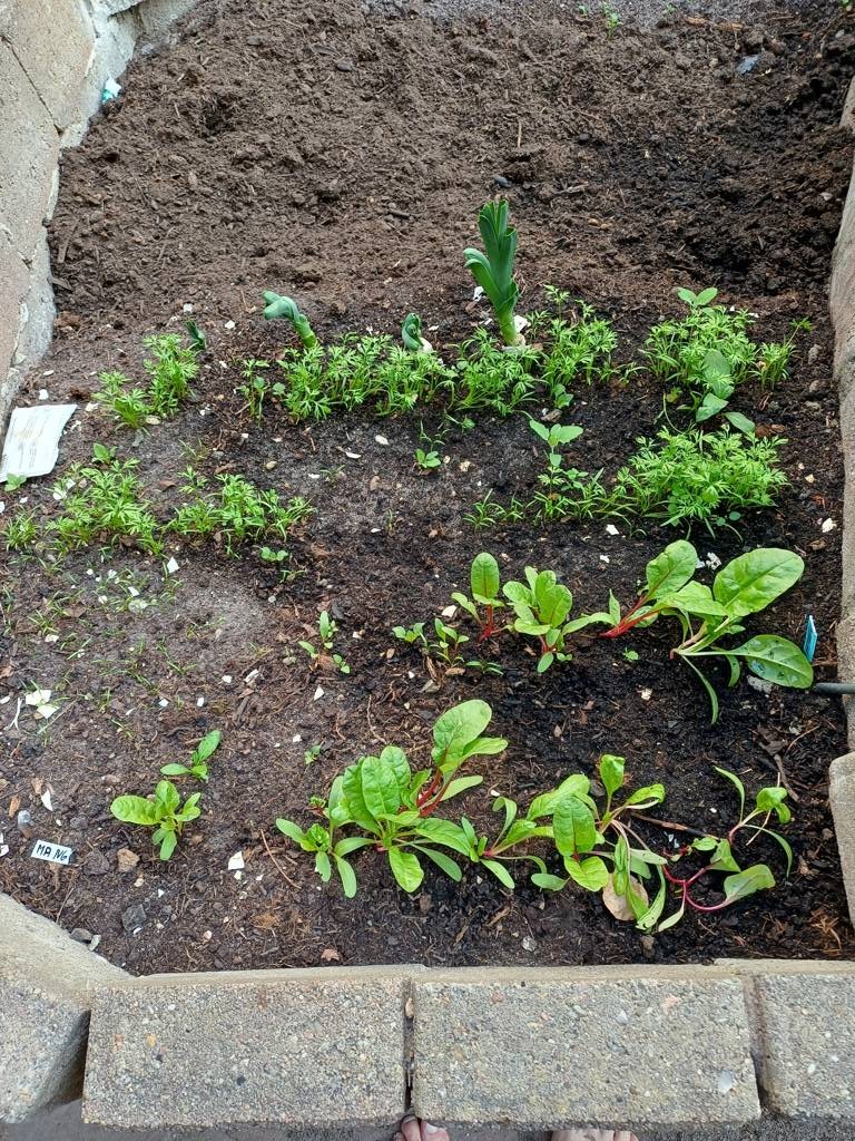 da muss ich mal warten wie sich das entwickelt - Kopfsalat hätte da auch sein sollen und Rucola - aber das kann ich nicht so recht identifizieren
