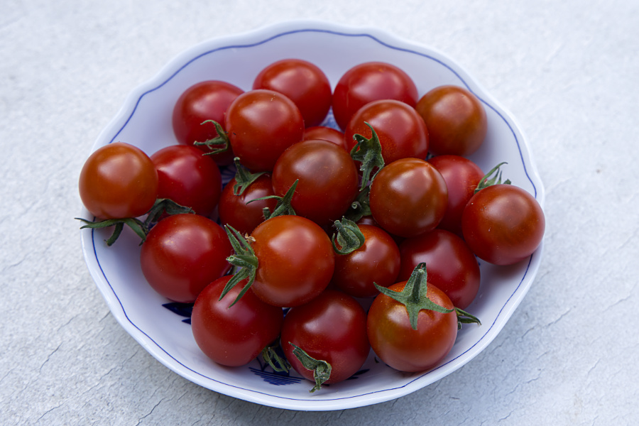 Bei mir sind täglich ca. 20 reif, von Cocktail über Rispen und Eier zu Ochsenherz, sehr angenehme Menge.