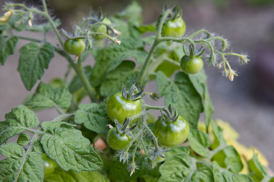 Meine selbst gezogenen Buschtomaten gefallen mir am besten, denn sie wuchern nicht so und bleiben klein und buschig. Davon sind insgesamt 7 Pflanzen was geworden. Die Früchte kann ich auch bald ernten.