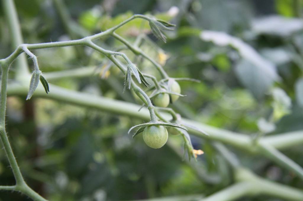 Meine Tomaten sind noch kaum rot, nur die drei auf dem Bild.