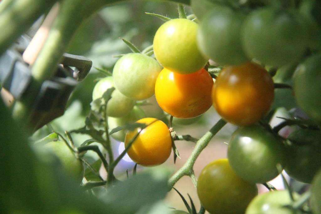 Ich habe keine Ahnung... ich dachte, es wäre alles die gleichen roten Cocktailtomaten, aber sie entwickeln sich sehr unterschiedlich. Einig sind größer, nach wie vor grün. Und dann diese gelben, die sehr lecker sind. Es gibt jede Menge Sorten gelbe Tomaten, schau mal hier: