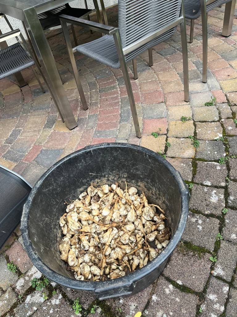 Die Pflanzen sind ja enorm in die Höhe geschossen, da hat es für die Knollenbildung (täuscht vielleicht, sie sind wie kleine bis mittelgroße Kartoffeln) wohl nicht gereicht.