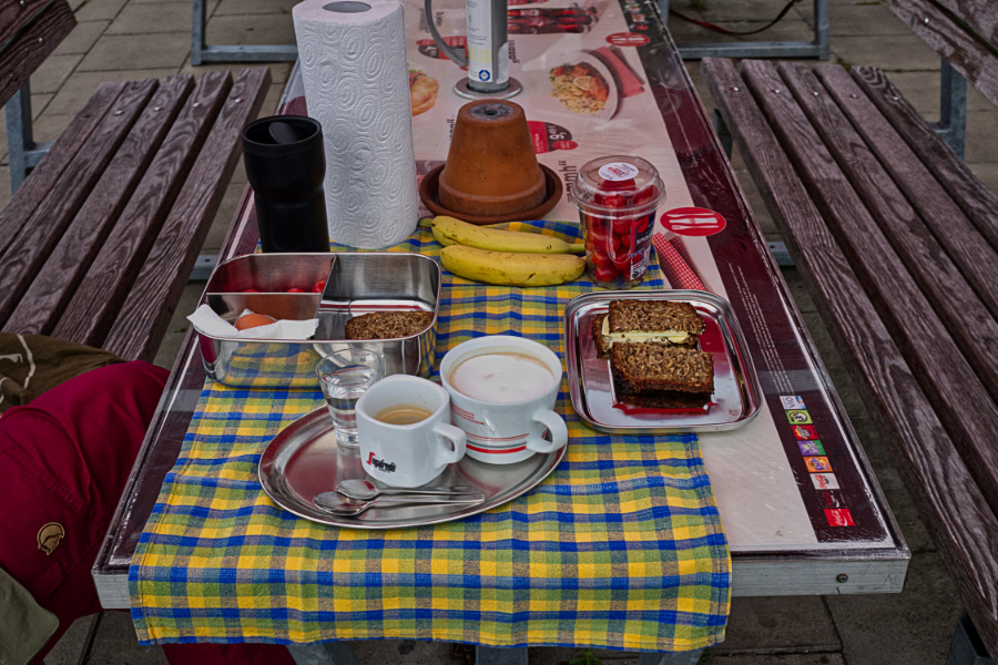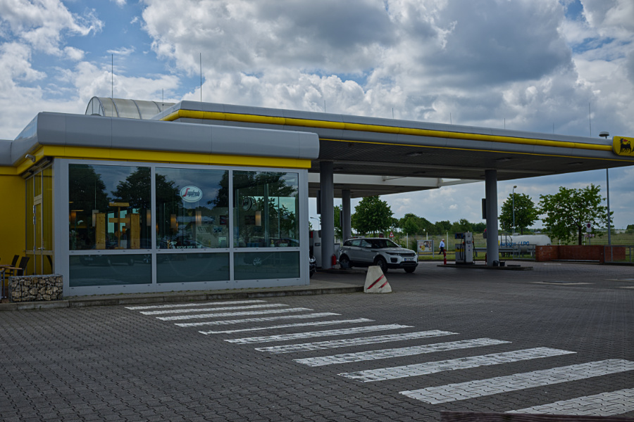 Ich fuhr zunächst mit dem Auto nach Hamburg und dort ließ ich mein Auto stehen und fuhr mit Karin zusammen weiter. Unterwegs gab es dann eine zünftige Brotzeit und wichtig, wir tankten das Auto voll, damit wir unabhängig von den Öffnungszeiten der Tankstellen sind. Diese sind nämlich im Osten Mecklenburgs nicht so häufig. Nur wenige Kilometer entfernt beginnt auch schon das Bundesland Brandenburg.