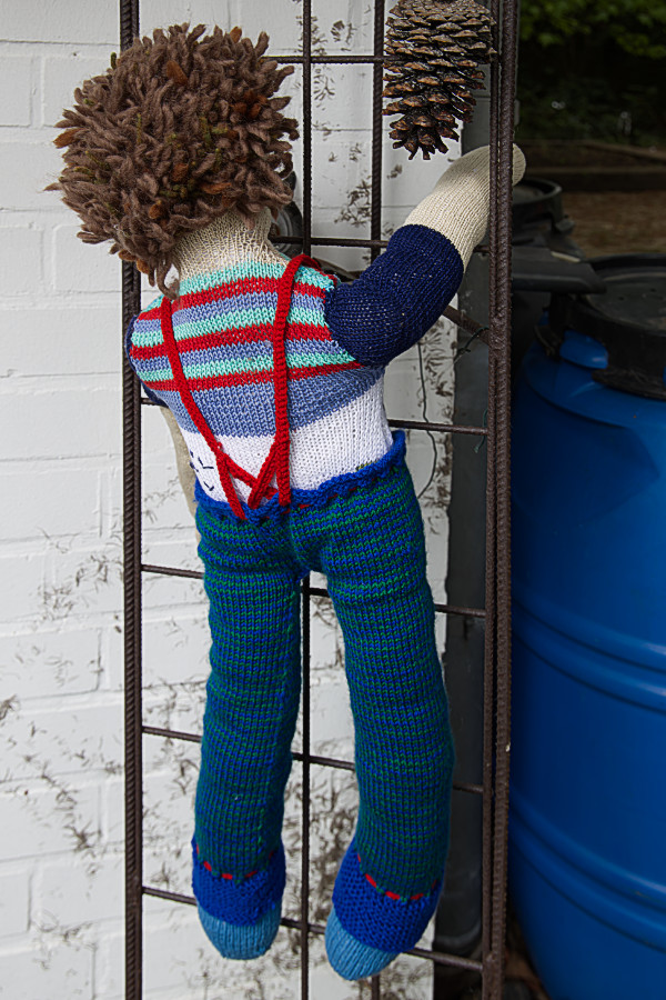 Für Corona-Max, meine Strickpuppe, wollte ich ein paar Anziehsachen stricken. Ich fing mit einer Hose an und zwar in den Farben grün und blau.