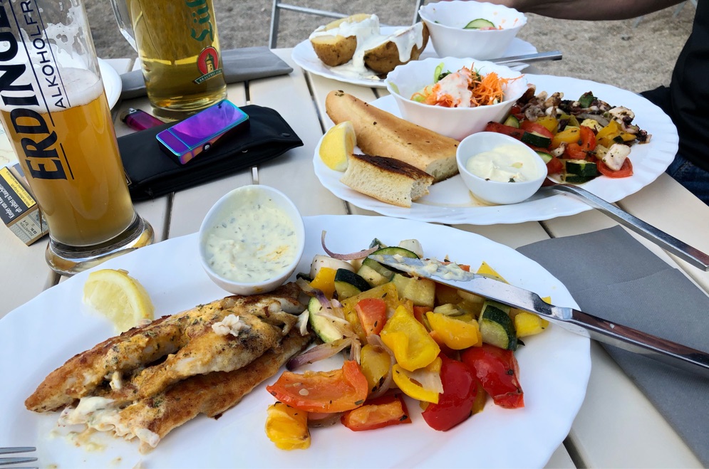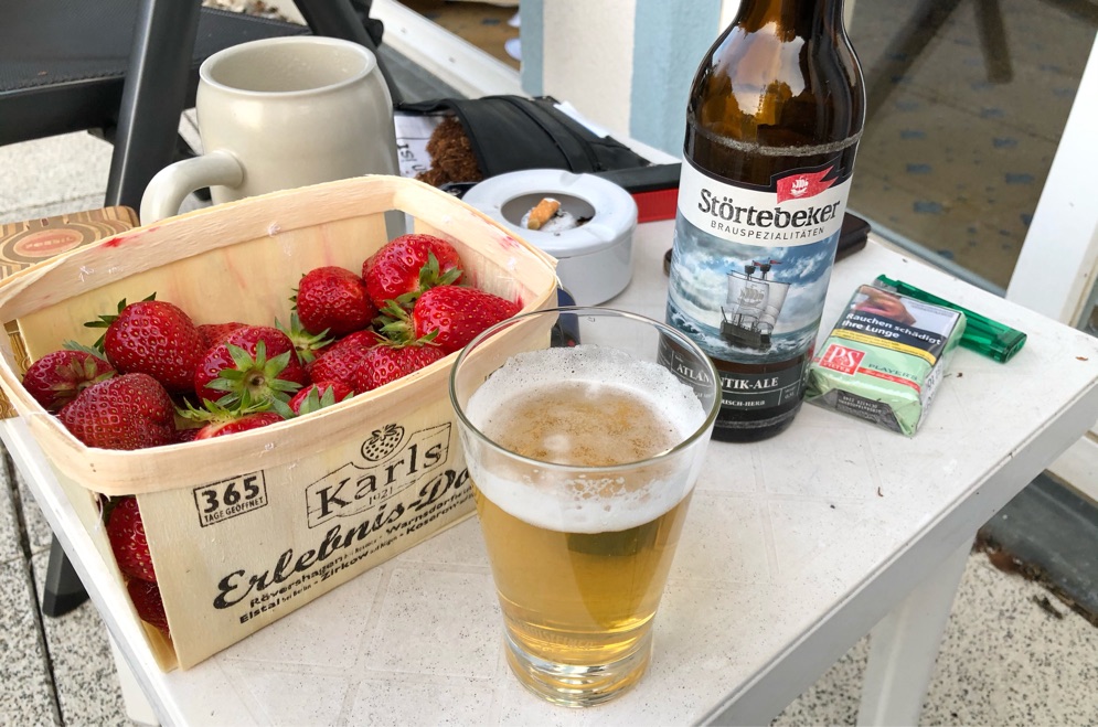 Man hat sich im REWE mit flüssigen Grundnahrungsmitteln eingedeckt, beim Ialiener im Hotel gab es Pizza und am Abend einen kurzen Besuch an der Ostsee. Wir sind in Bansin an den Strand. Die Parkplatzsuche war ein einziges Chaos, alles ist proppenvoll.