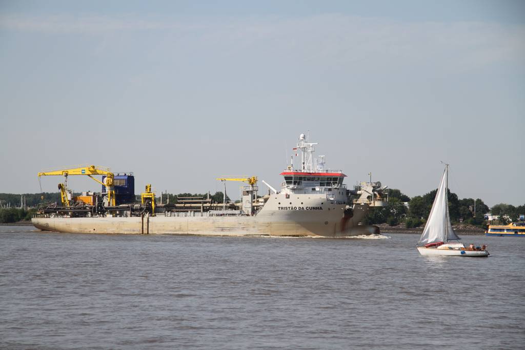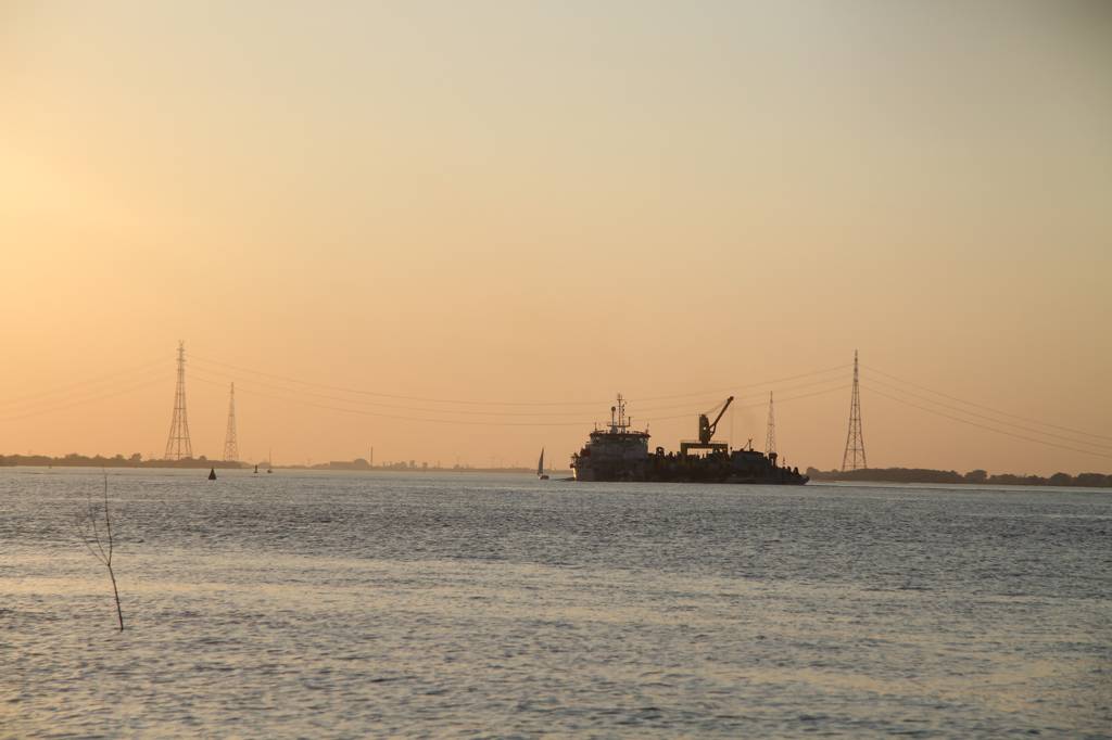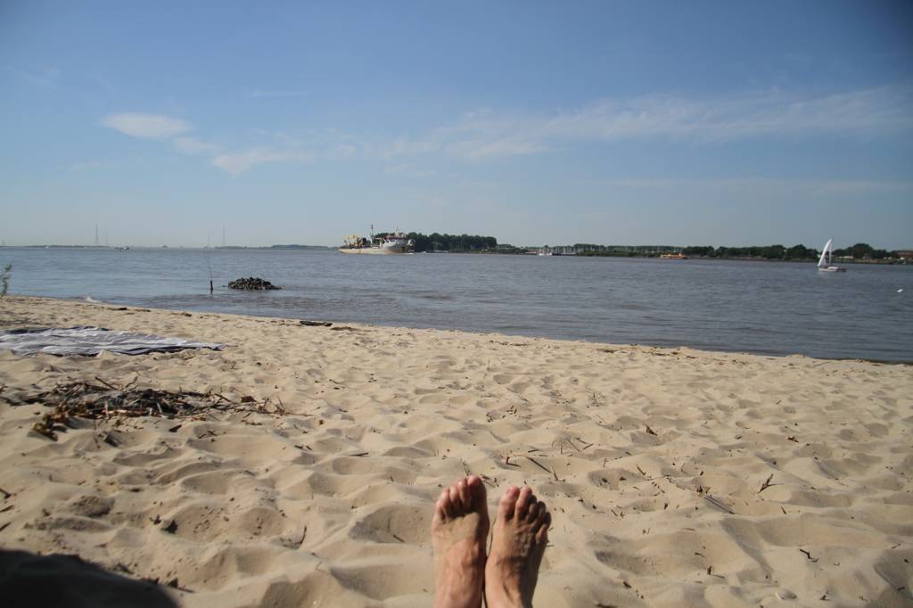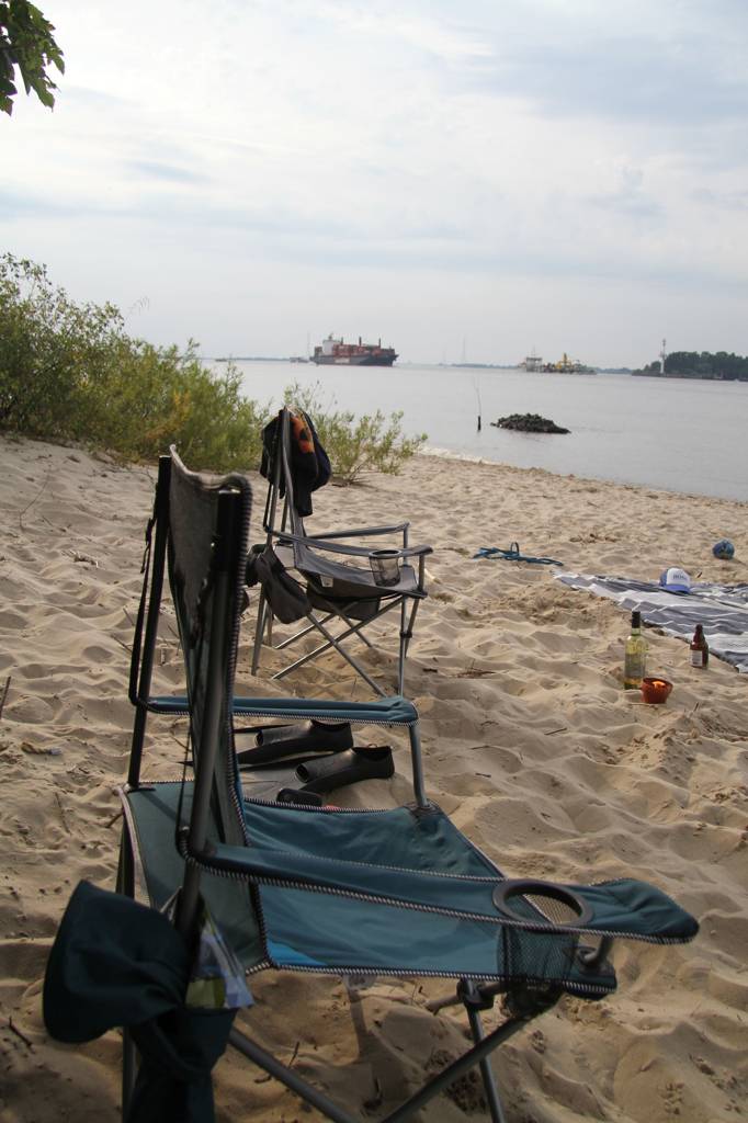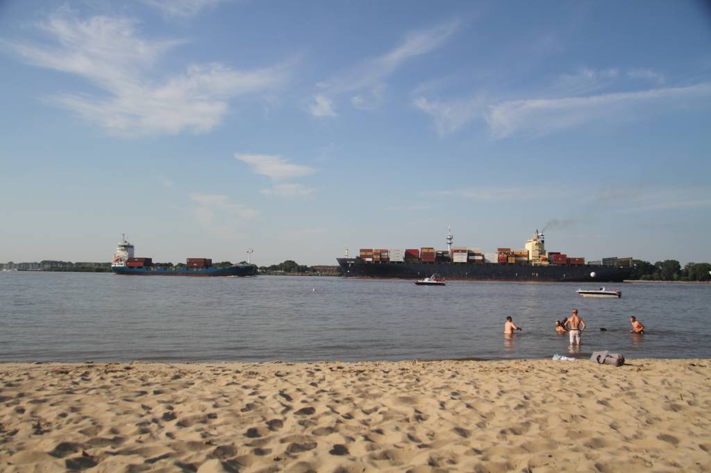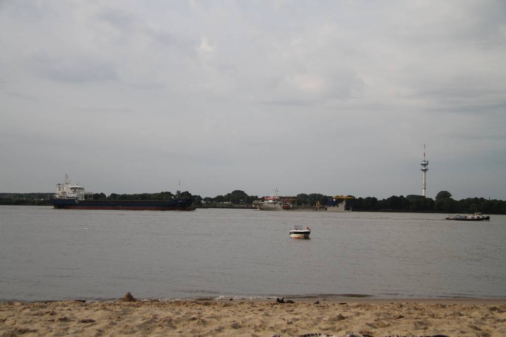 Dort Sandstrand und toller Blick auf Schiffe und Schiffe und Schiffe