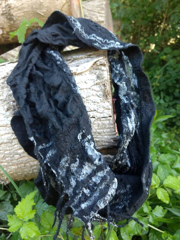 Nunofilzen bedeutet, dass man Wolle mit Stoff untrennbar verbindet.