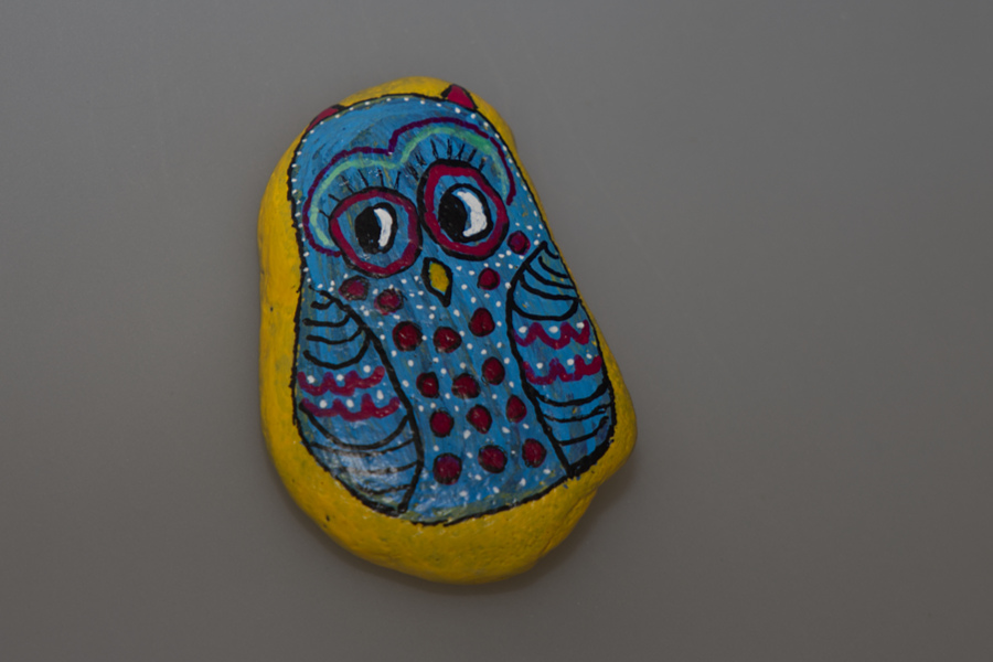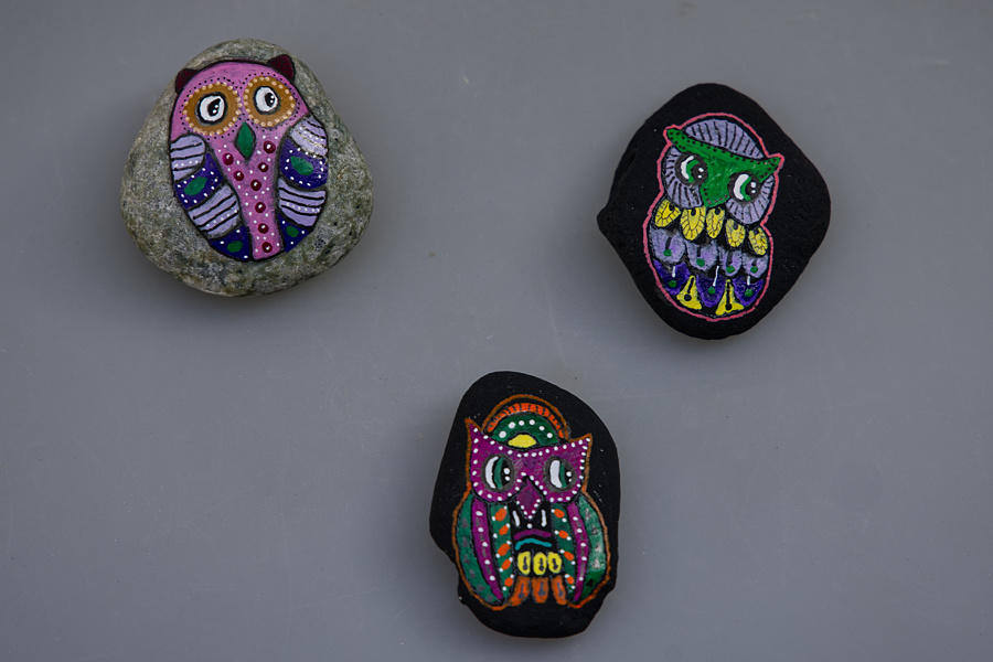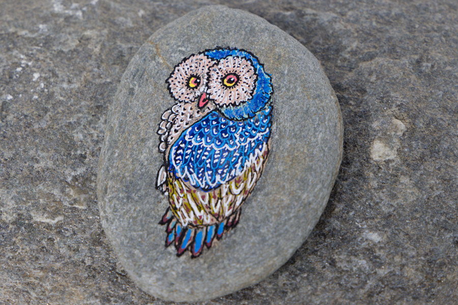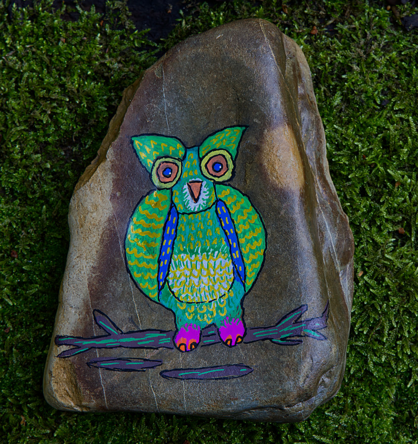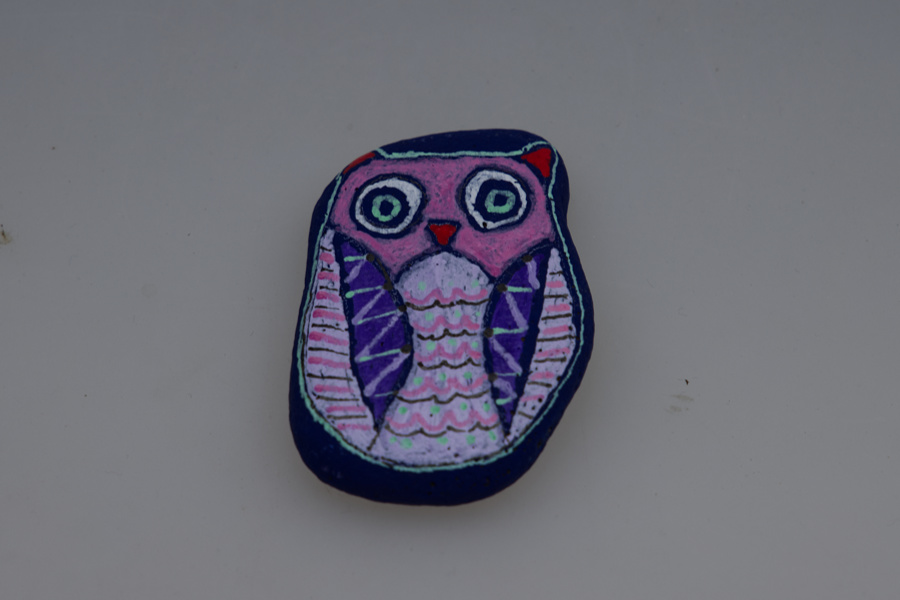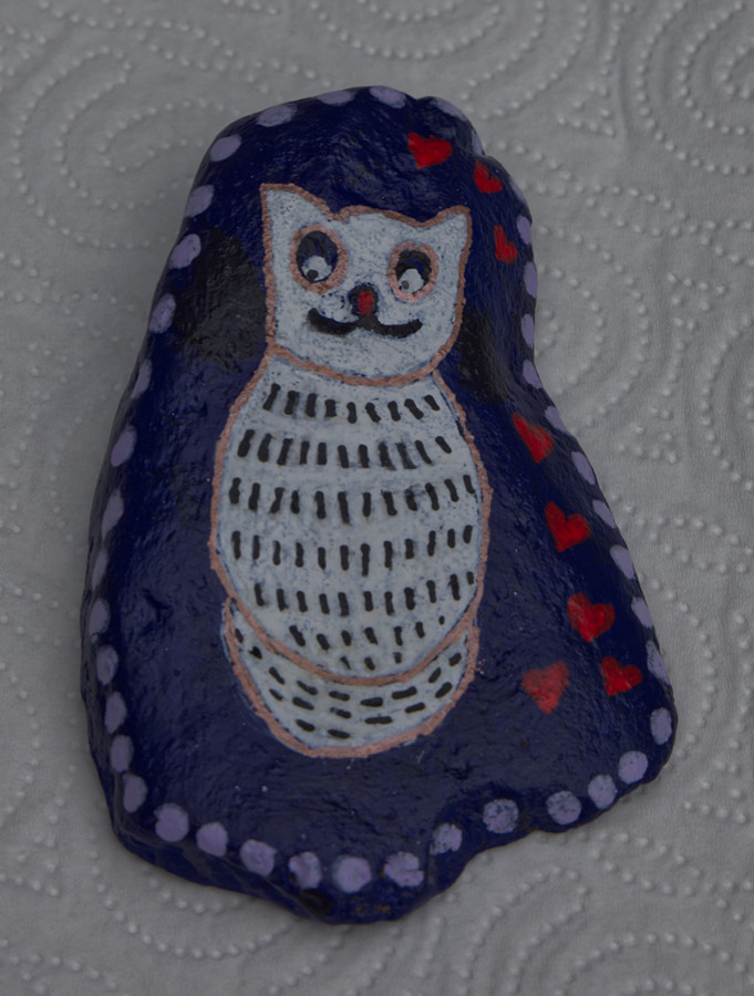 Eule - Hund - Katze auf Stein gemalt