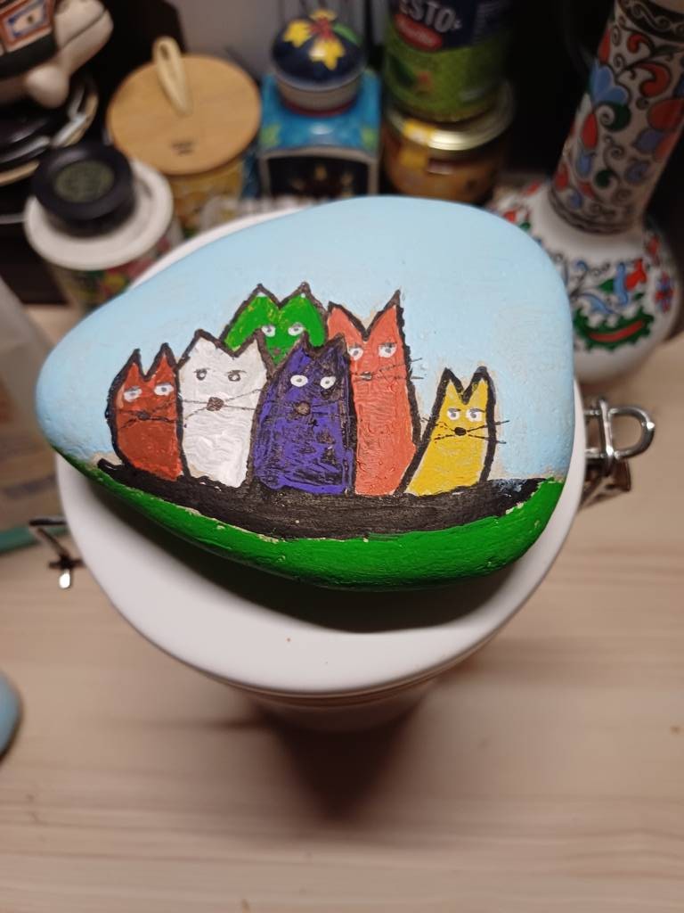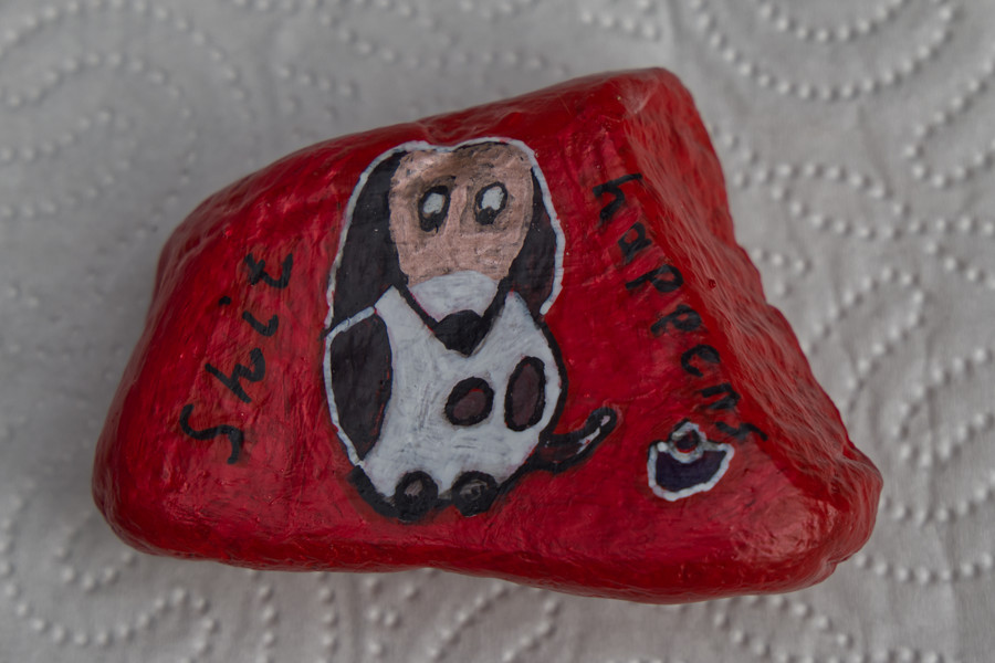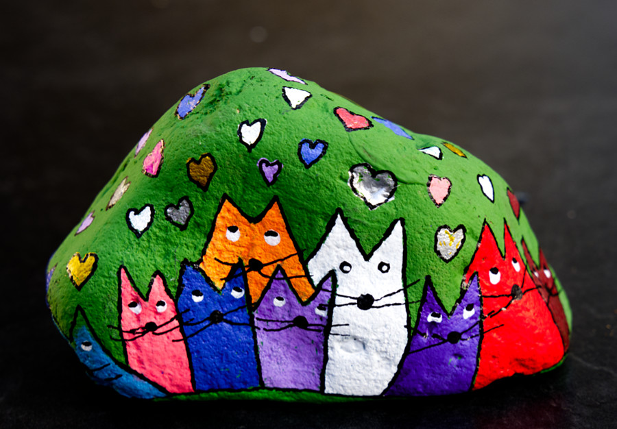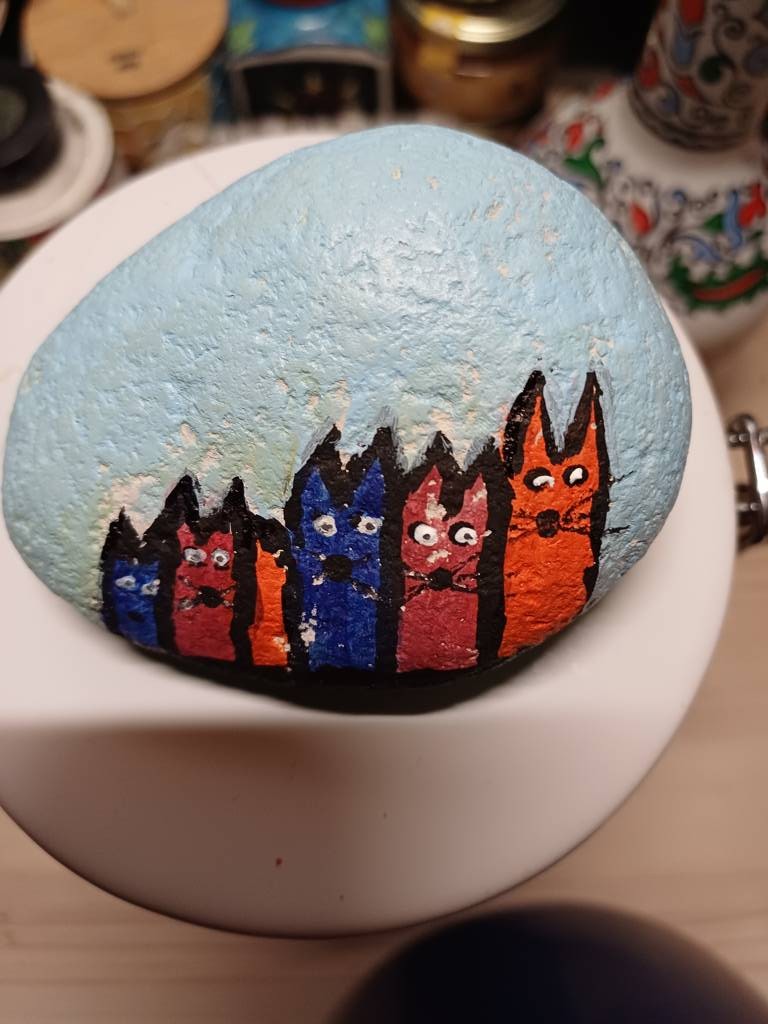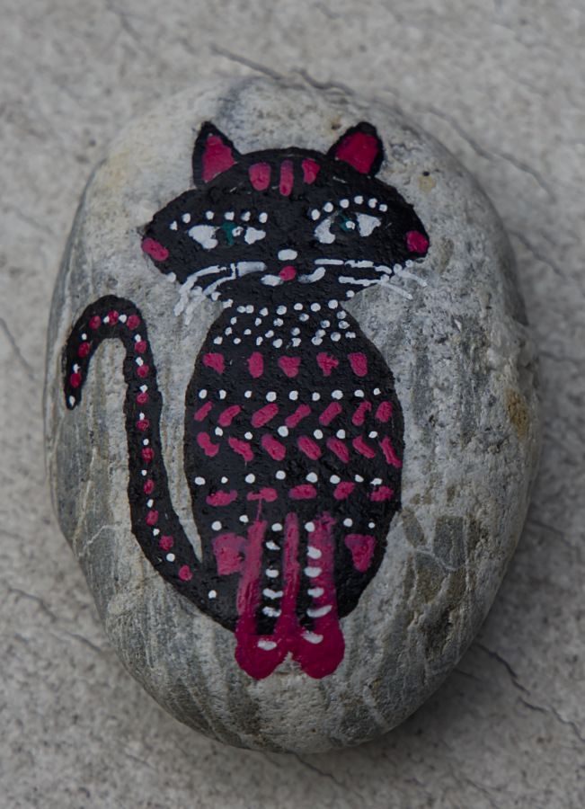 Eule - Hund - Katze auf Stein gemalt