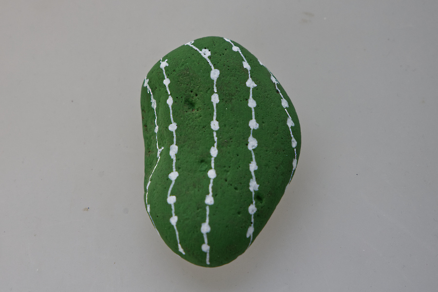 Die Steine sehen sehr dekorativ in einem Blumentopf mit kleinen bunten Steinen aus.