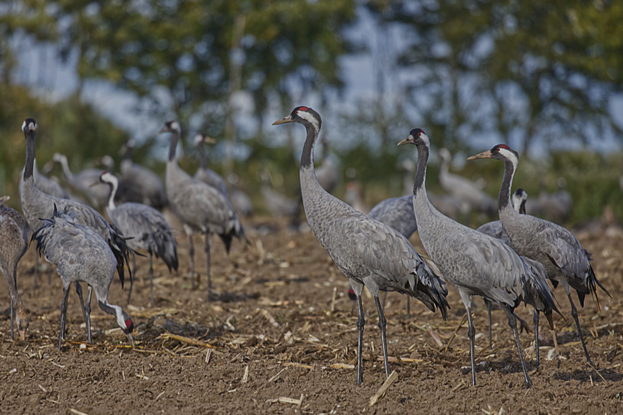 Wir bereiteten alles vor und öffneten auch schon das Fenster und fuhren dann wieder zu der Stelle. Ganz vorsichtig - ohne hektische Bewegungen - hoben wir die Kameras hoch und fotografierten und hatten Glück, die Kraniche bemerkten uns nicht groß als Störfaktor und blieben.