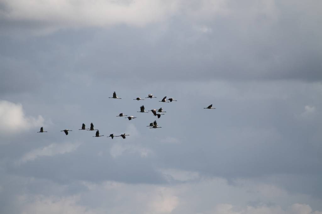 Ist das nicht toll, wenn man dann die Kraniche fliegen sieht? Ich kann mich dafür restlos begeistern. :)