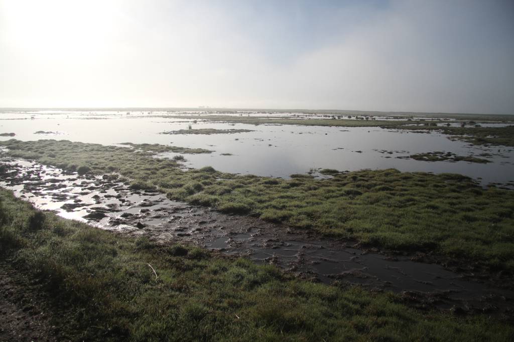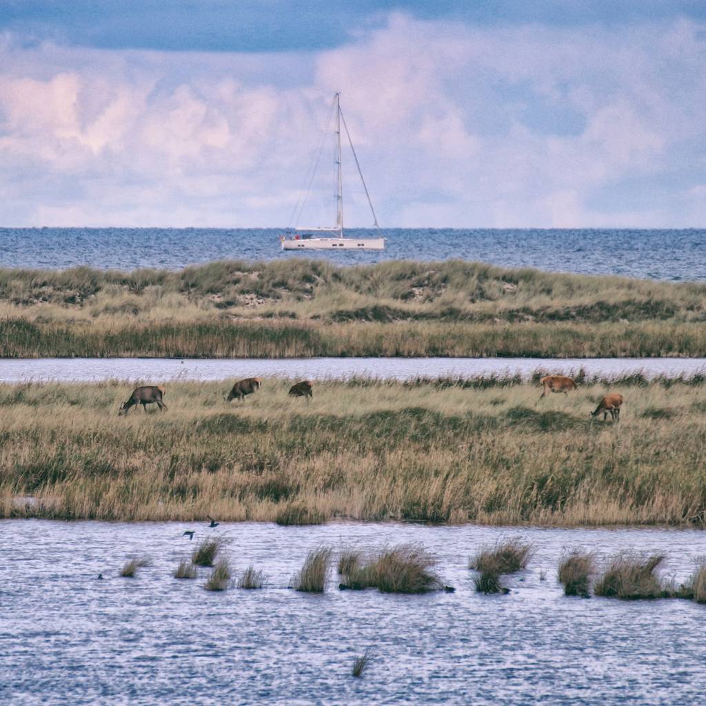 Wir kehren zurück zur Hütte um einmal über die Wiesen einen Blick Richtung Bodden zu werfen