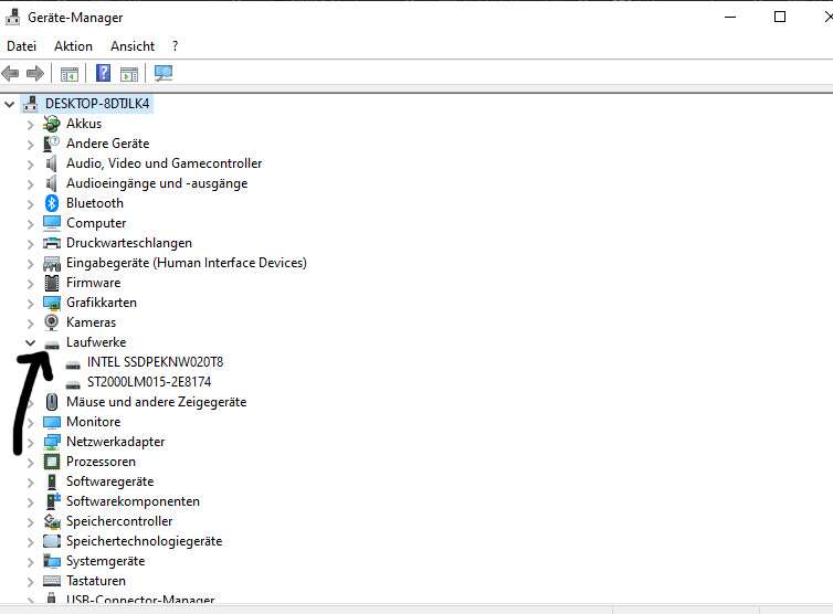 3. suche nach "Laufwerke und klicke auf den ">", dann werden alle Festplatten angezeigt