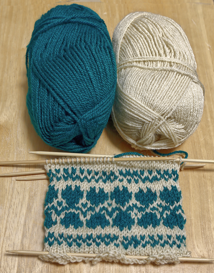 dann wieder 1 Masche beige und 1 Masche grün