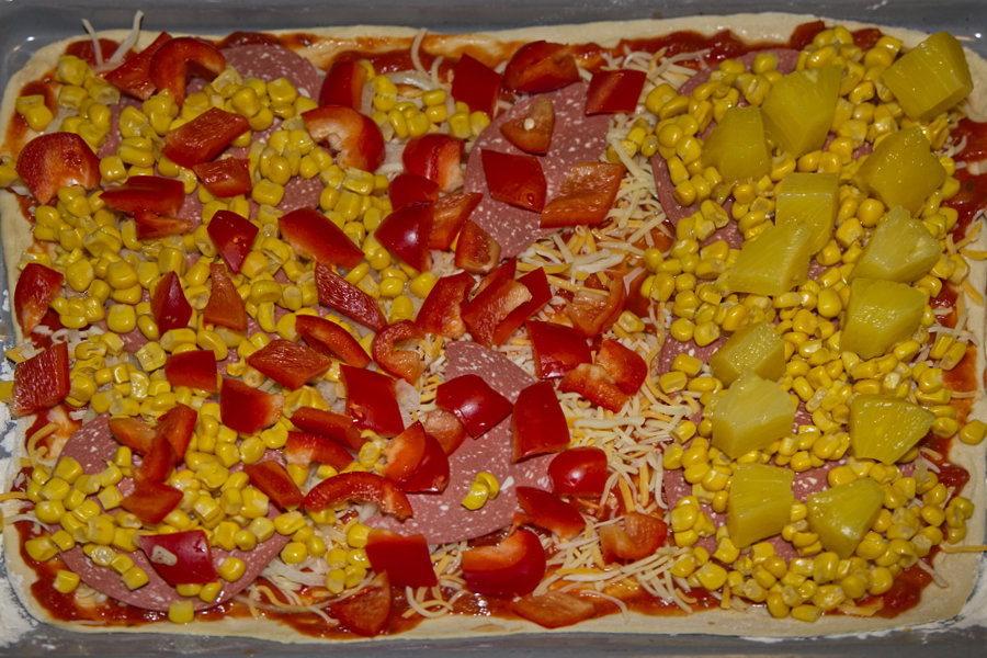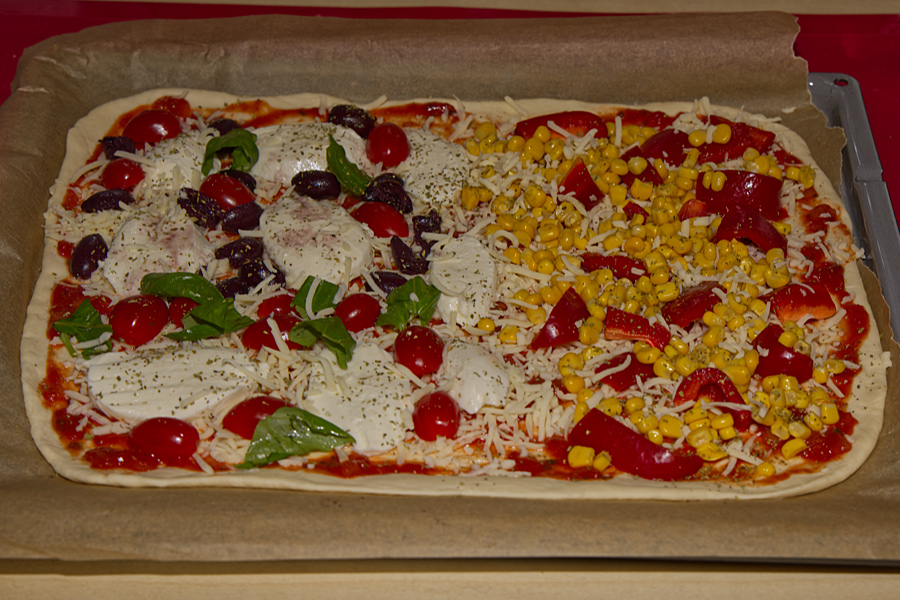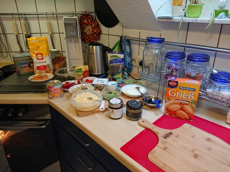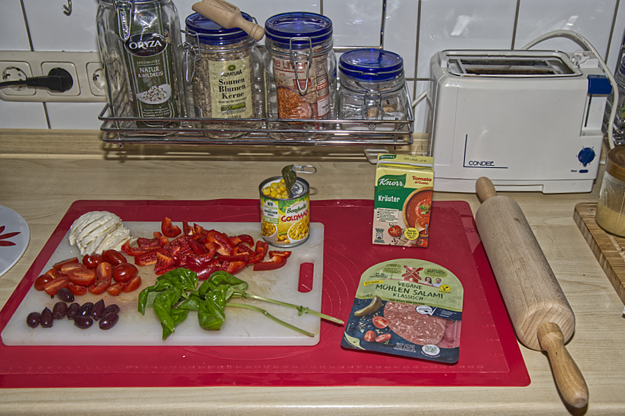 In der Zwischenzeit habe ich die Zutaten für den Pizzabelag zusammengestellt.