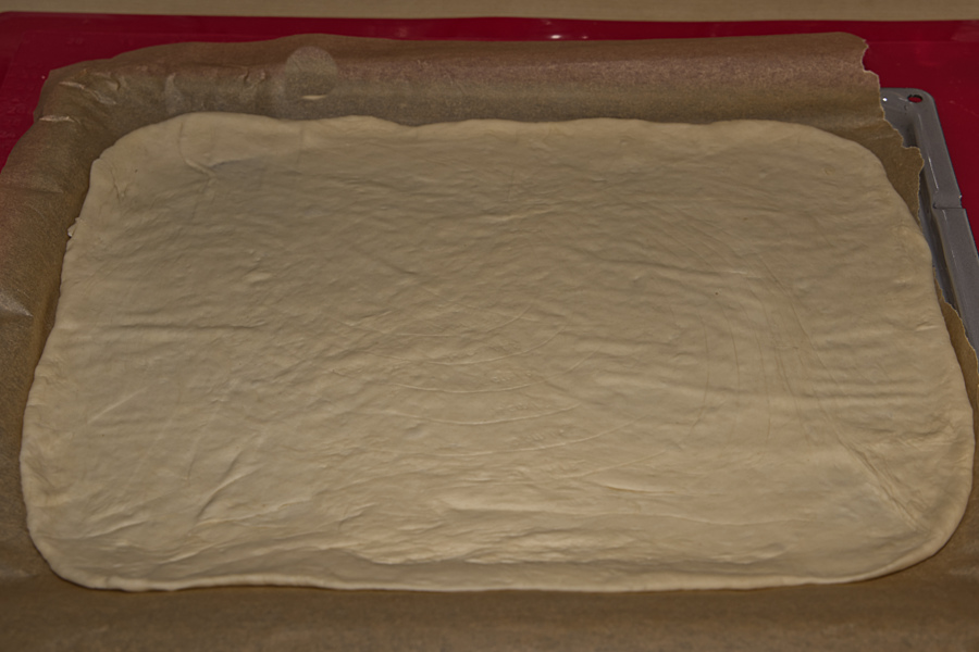 Den Teig habe ich in eine Schüssel an einem warmen Ort gelegt und nicht ganz eine Stunde gehen lassen.