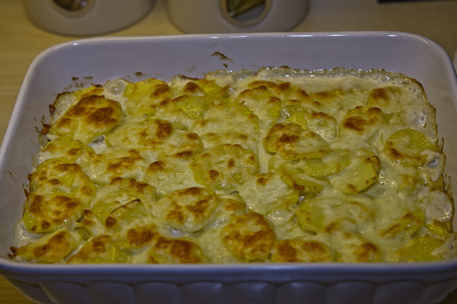 • Ich hatte mal Lust einen Kartoffelgratin zu machen und habe mir verschiedene Rezepte dazu angesehen. Dann habe ich von dem einen dies und von dem anderen das genommen und herausgekommen ist ein richtig leckerer Kartoffelgratin.