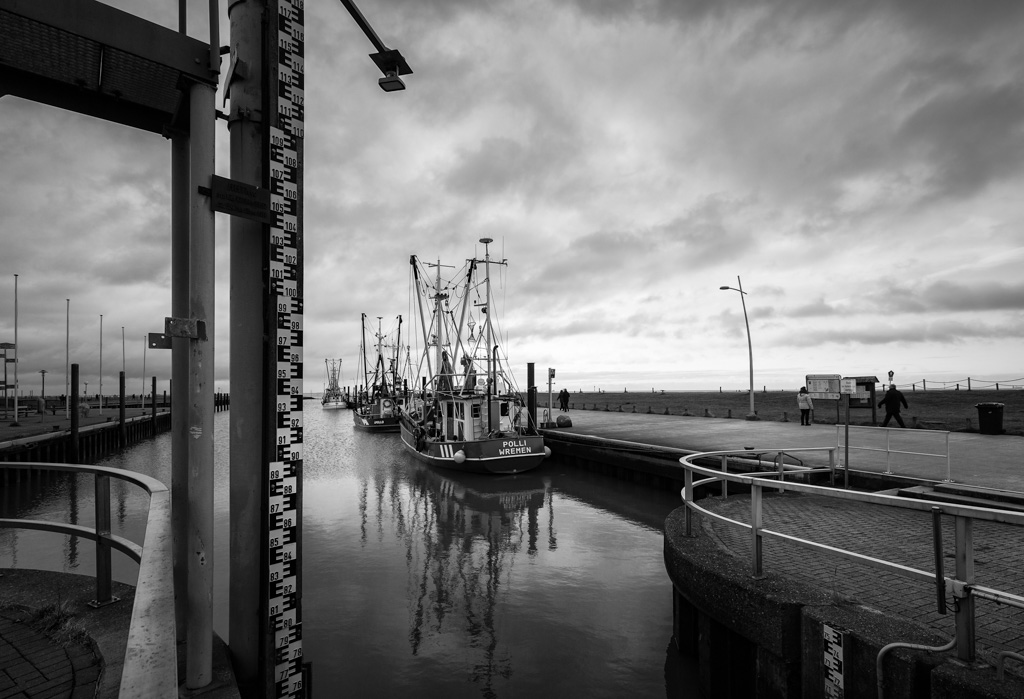 Erstes Ziel war Wremen mit seinem kleinen Kutterhafen. Es war sogar anfangs ein wenig sonnig.