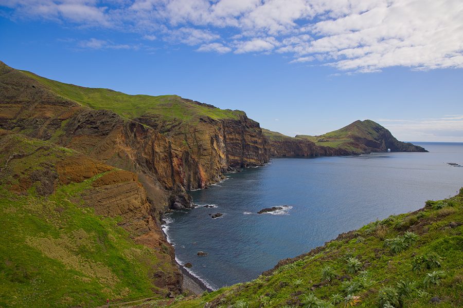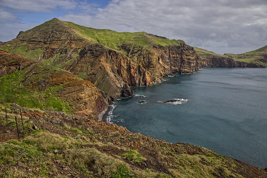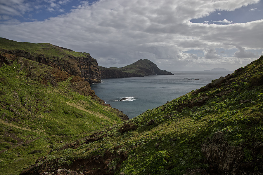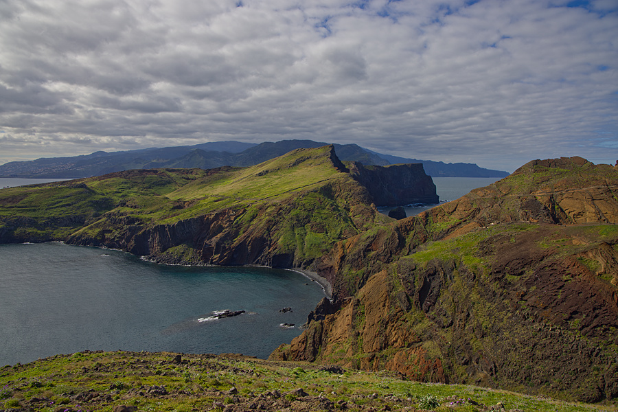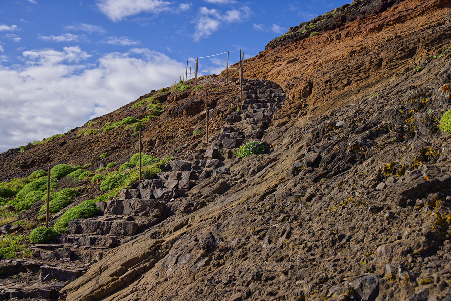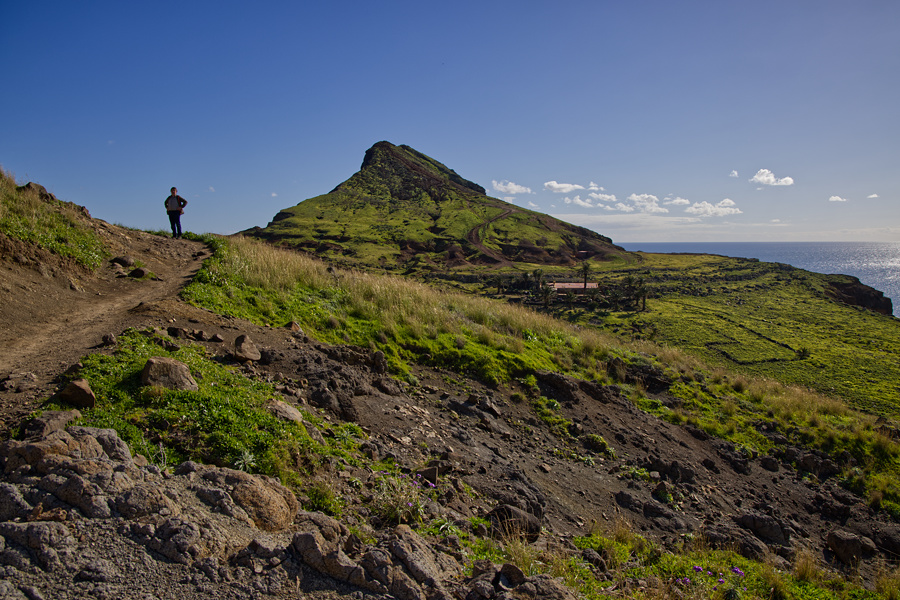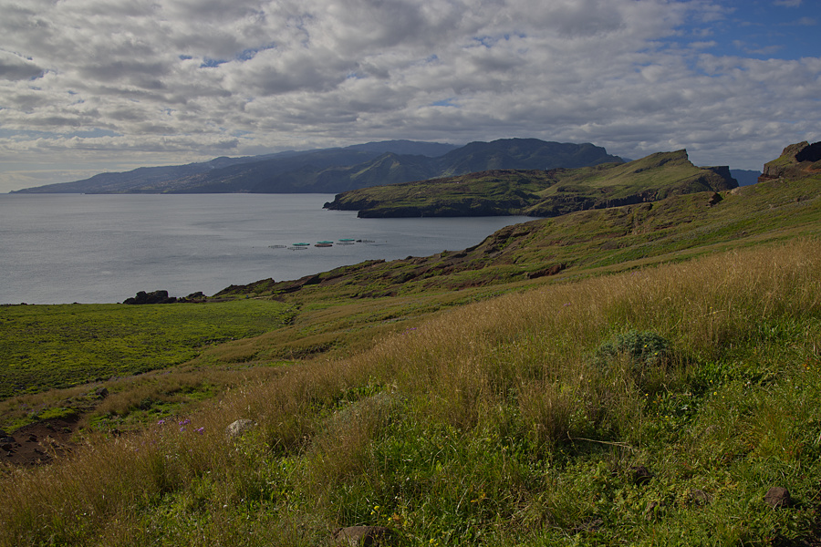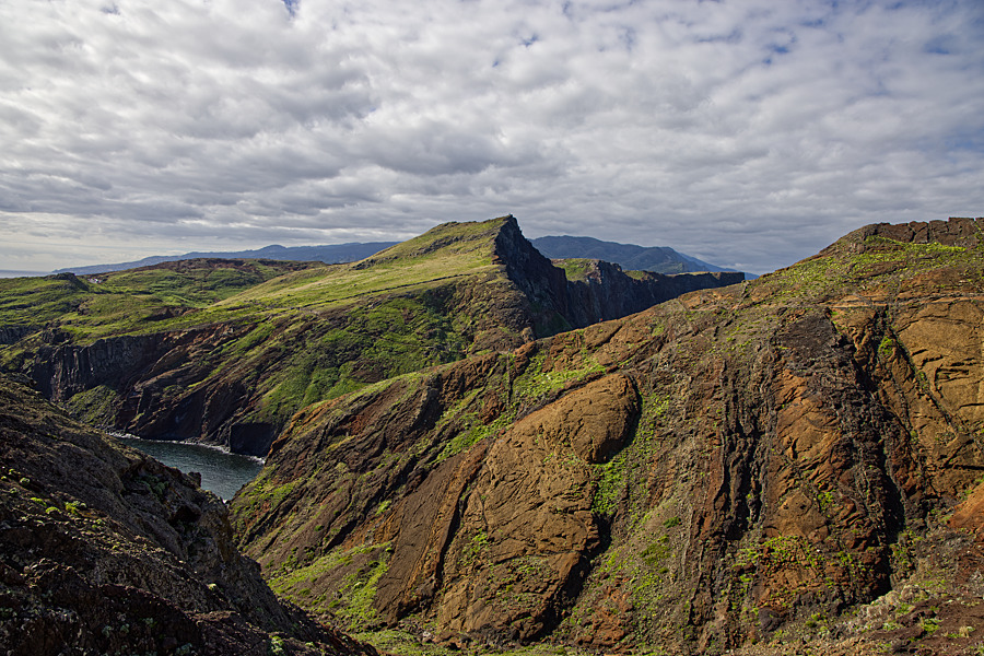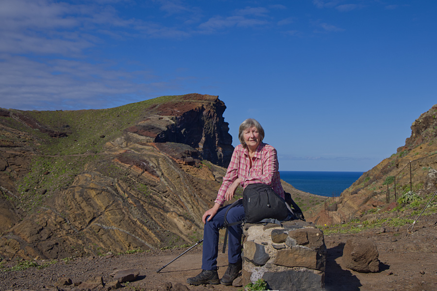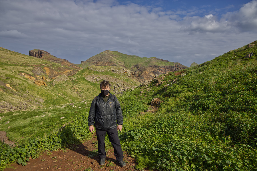 Wir gehen los, es geht rauf und runter, aber es ist gut zu bewältigen. Ich kann ja Pausen machen, wenn ich außer Atem komme. Da ich aber immer wieder neue Fotomotive sehe, kommen wir eh nur langsam voran. Es ist eine wunderschöne Gegend. Beim Anflug habe ich diese Halbinsel ja schon von oben gesehen und gestaunt.