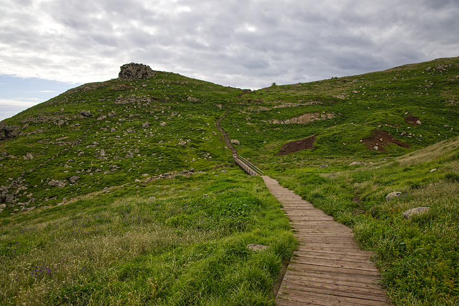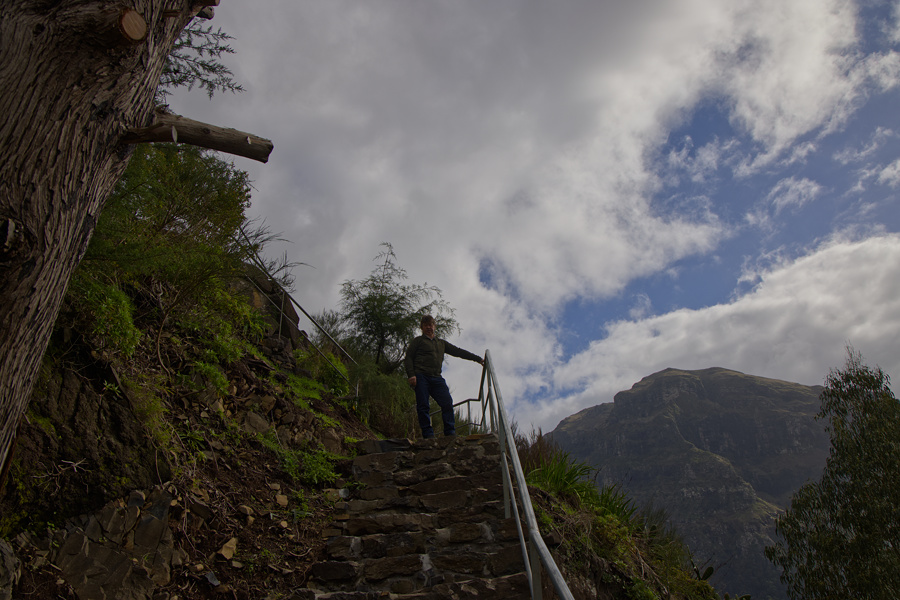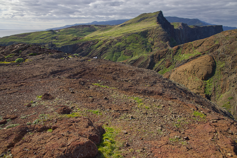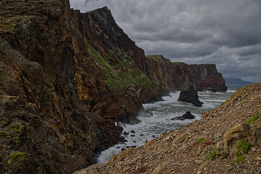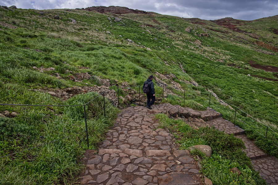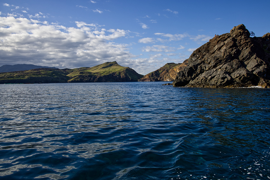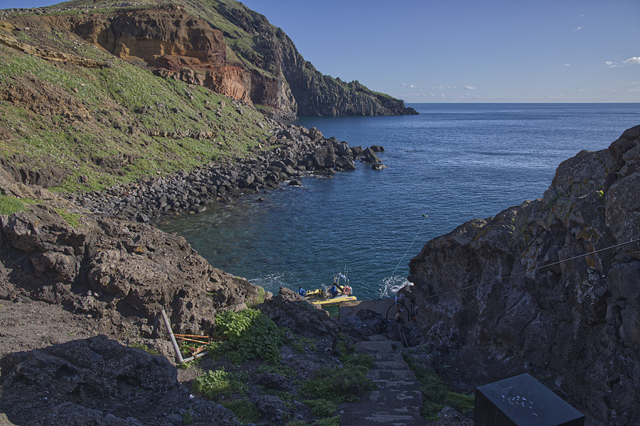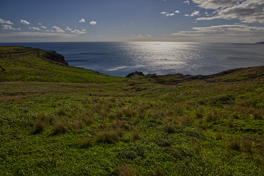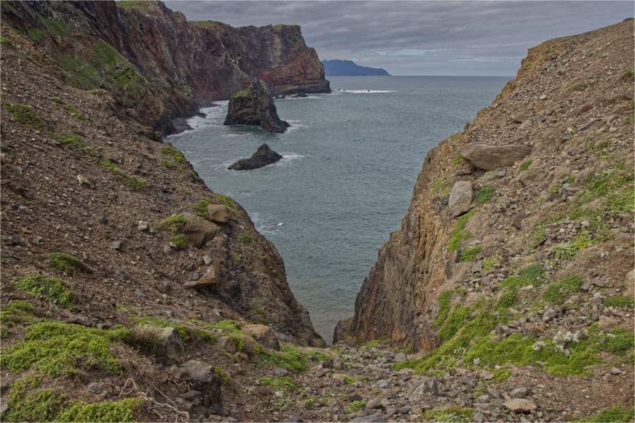 Wir gehen los, es geht rauf und runter, aber es ist gut zu bewältigen. Ich kann ja Pausen machen, wenn ich außer Atem komme. Da ich aber immer wieder neue Fotomotive sehe, kommen wir eh nur langsam voran. Es ist eine wunderschöne Gegend. Beim Anflug habe ich diese Halbinsel ja schon von oben gesehen und gestaunt.