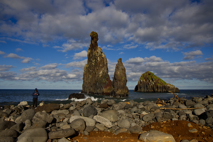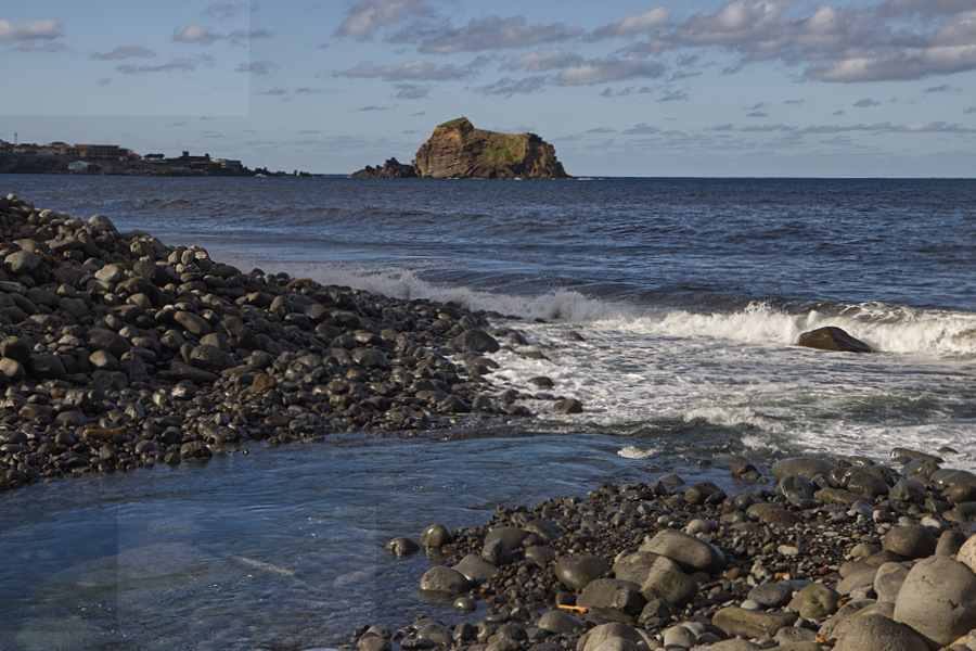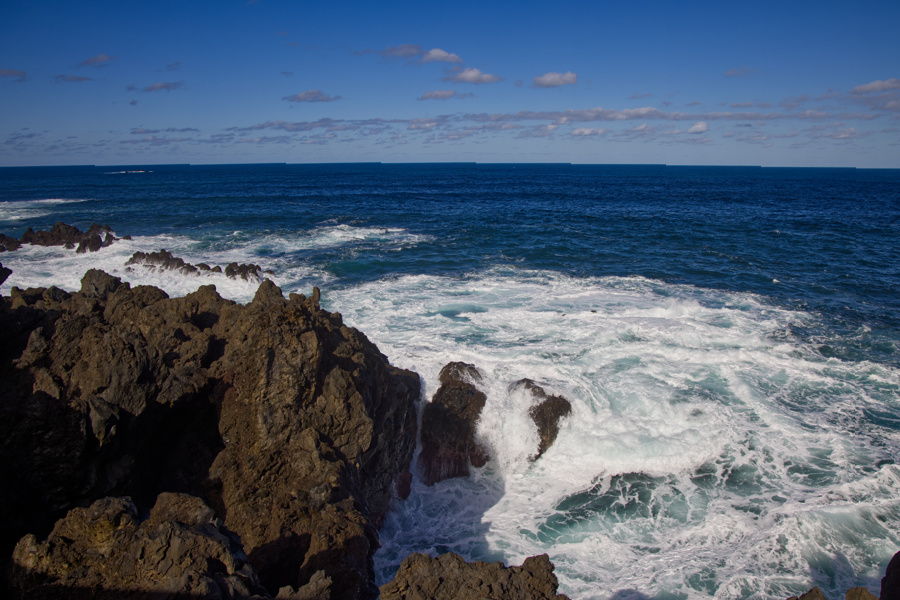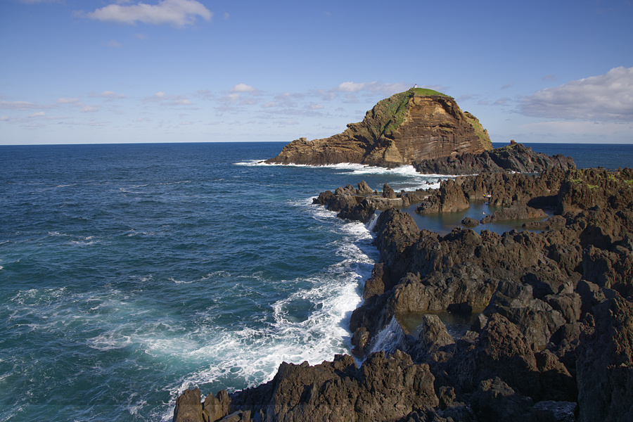 • Es ist der 14.1.2021, das Wetter klart auf und wir fahren nach einem langen Frühstück los nach Porto Moniz. Wir stellen das Auto ab und machen einen kleinen Spaziergang. Das Meer ist heute wild, wir stehen am Kai und schauen lange auf die die wogenden Wellen. In den Lavabecken sehen wir einen einsamen Schwimmer. Puhh, mir wäre das zu kalt.